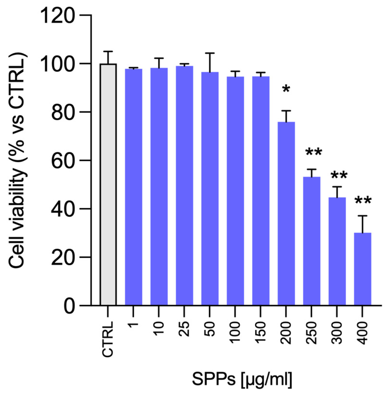 2.1. SPPs Inhibit A549 Cancer Cell Proliferation