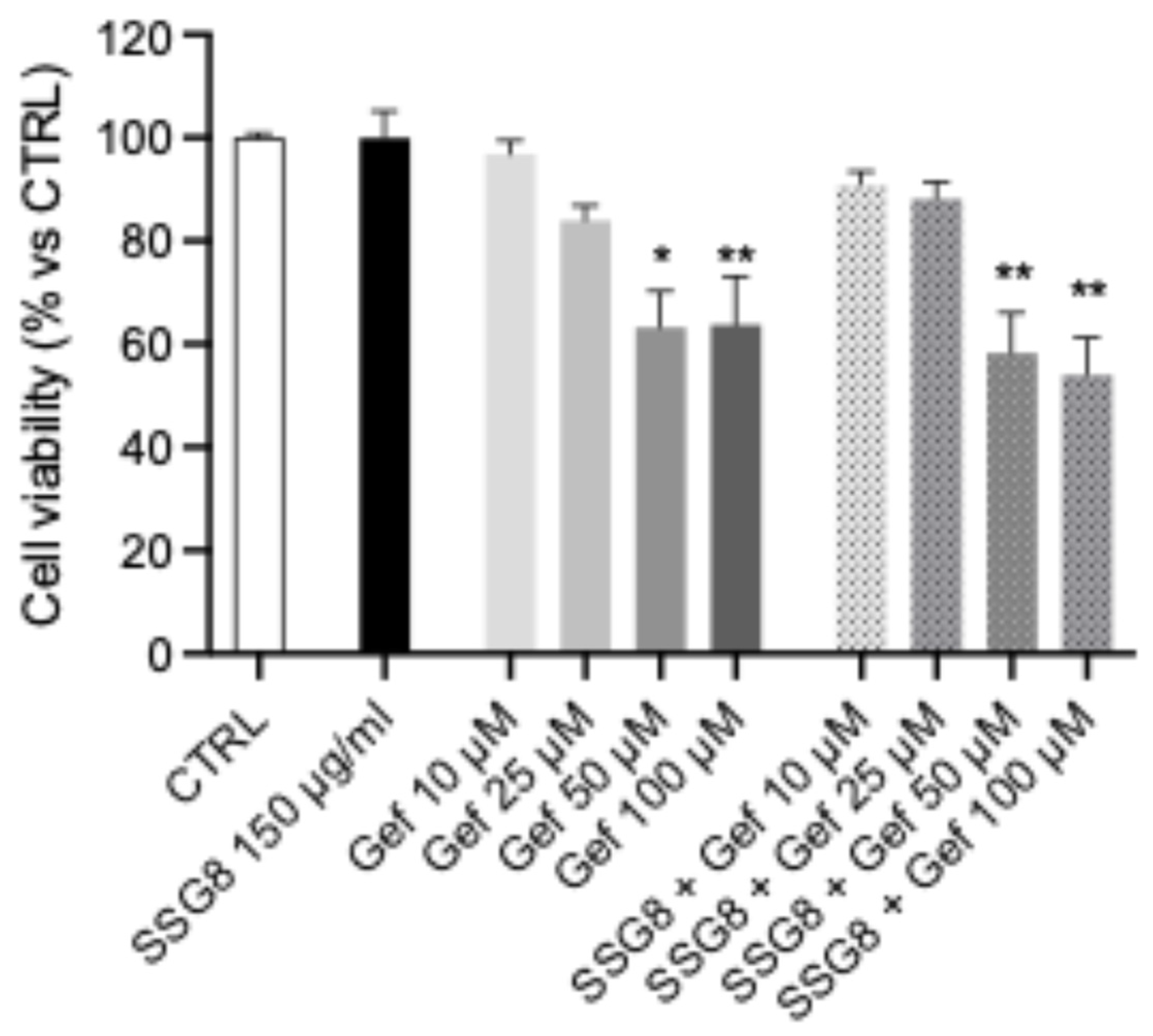 2.5. SPPs Enhance the Sensitivity of A549 Lung Tumor Cells to Gefitinib