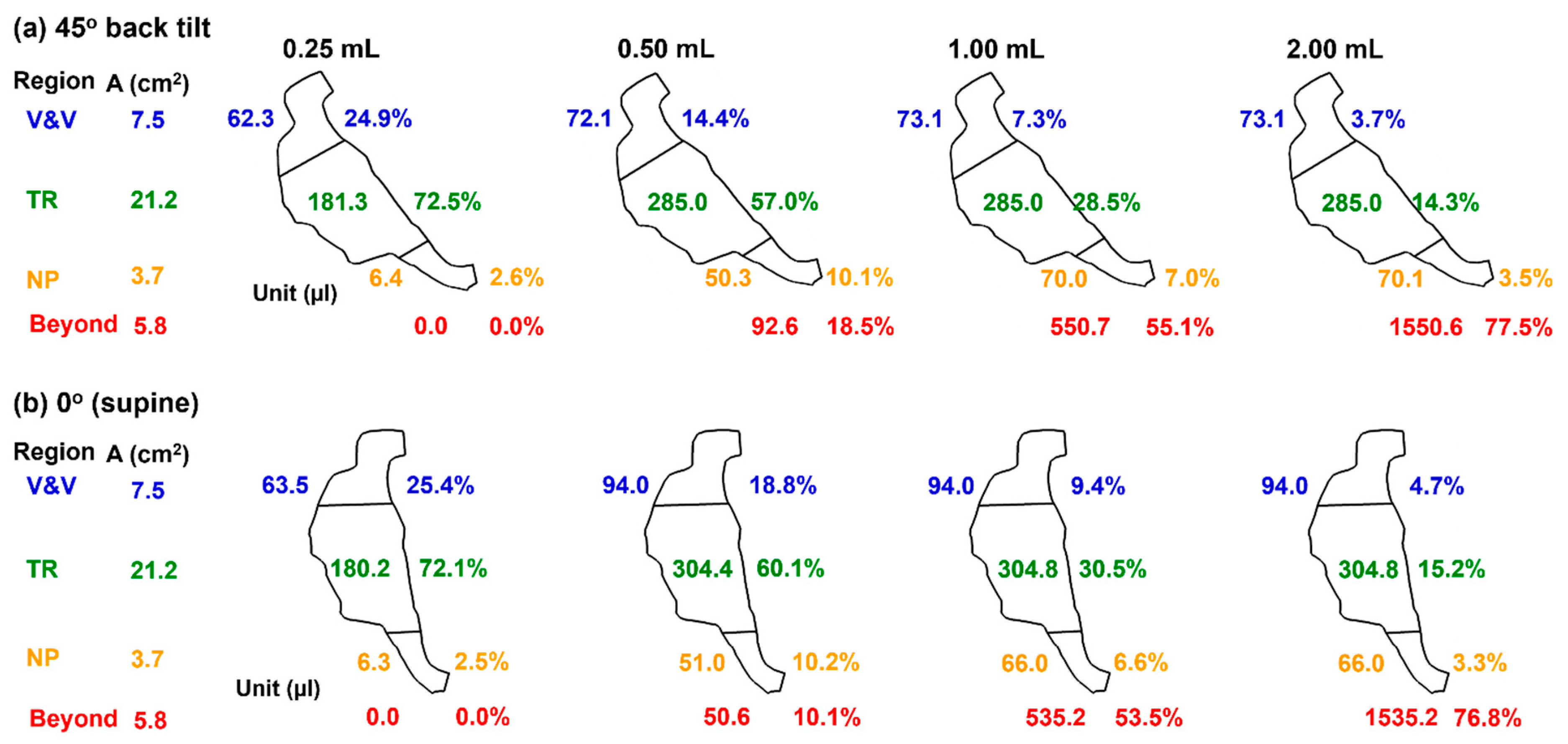 2.4.1. Delivered Dose at a 45° Back Tilt Body/Head Position