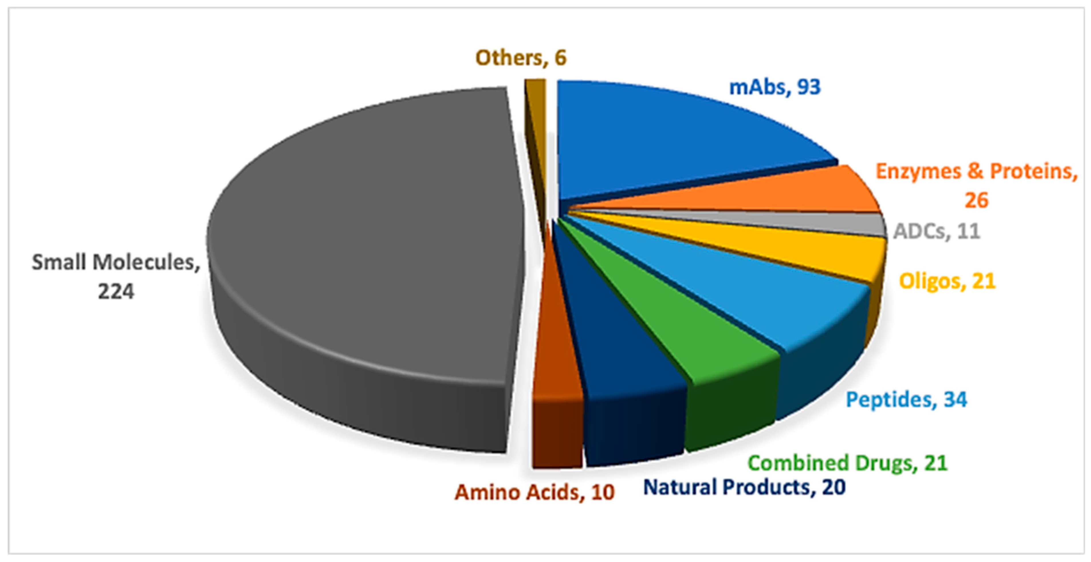 - de la Torre, B.G.; Albericio, F. The Pharmaceutical Industry in 2025: An Analysis of FDA Drug Approvals from the Perspective of Molecules. Molecules 2026, 31, 419. [Google Scholar] [CrossRef]