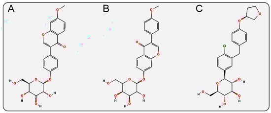 2D structures of (A) Isoononin, (B) Ononin, (C) Empagliflozin.