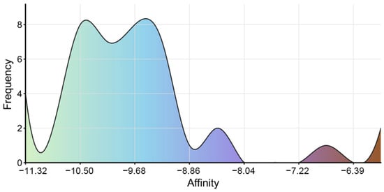 Previous studies have identified Isoononin and Ononin as common compounds in traditional Chinese herbal medicine and leguminous plants, exhibiting various biological activities [58,59]. Ononin has shown significant regulatory effects on inflammation and various diseases, such as diabetic nephropathy, obesity, acute myocardial infarction, Alzheimer’s disease, cerebral ischemia–reperfusion, osteoarthritis, and tumors [58]. Research indicates that Ononin alleviates streptozotocin-induced diabetic nephropathy in rats by reducing oxidative stress and inflammatory markers [60]. On the other hand, Ononin exerts potential therapeutic effects in obesity and related metabolic diseases by inhibiting PPARγ-mediated anti-lipogenesis activity and reducing lipid accumulation in human adipocytes [61]. In terms of anti-tumor effects, Ononin inhibits the proliferation and migration of tumor cells and induces apoptosis by suppressing the aberrant activation of pathways such as EGFR-Erk1/2, PI3K/Akt/mTOR, MEK/ERK, and JNK/ERK/p38 [58,62]. Conversely, Isoononin, as an isomer of Ononin, has relatively limited research on its pharmacological activity. However, preliminary evidence suggests it possesses anti-inflammatory and anti-tumor potential [59,63]. These pharmacological characteristics expand the application prospects of Isoononin and Ononin in metabolic diseases. Additionally, we conducted molecular docking analysis on 42 compounds, excluding Isoononin and Ononin. The results indicated that all 42 compounds exhibited good binding affinity with SGLT2, with binding energies below −5.0 kcal/mol (Figure 12). The visualization results of the molecular docking are shown in Supplementary File S5. Although these compounds performed poorly in preliminary drug-likeness and ADME/T analyses, most of them had binding energies with SGLT2 ranging from −8.0 to −11.0 kcal/mol. This high-affinity binding suggests that they may still serve as potential lead compounds for structural optimization.