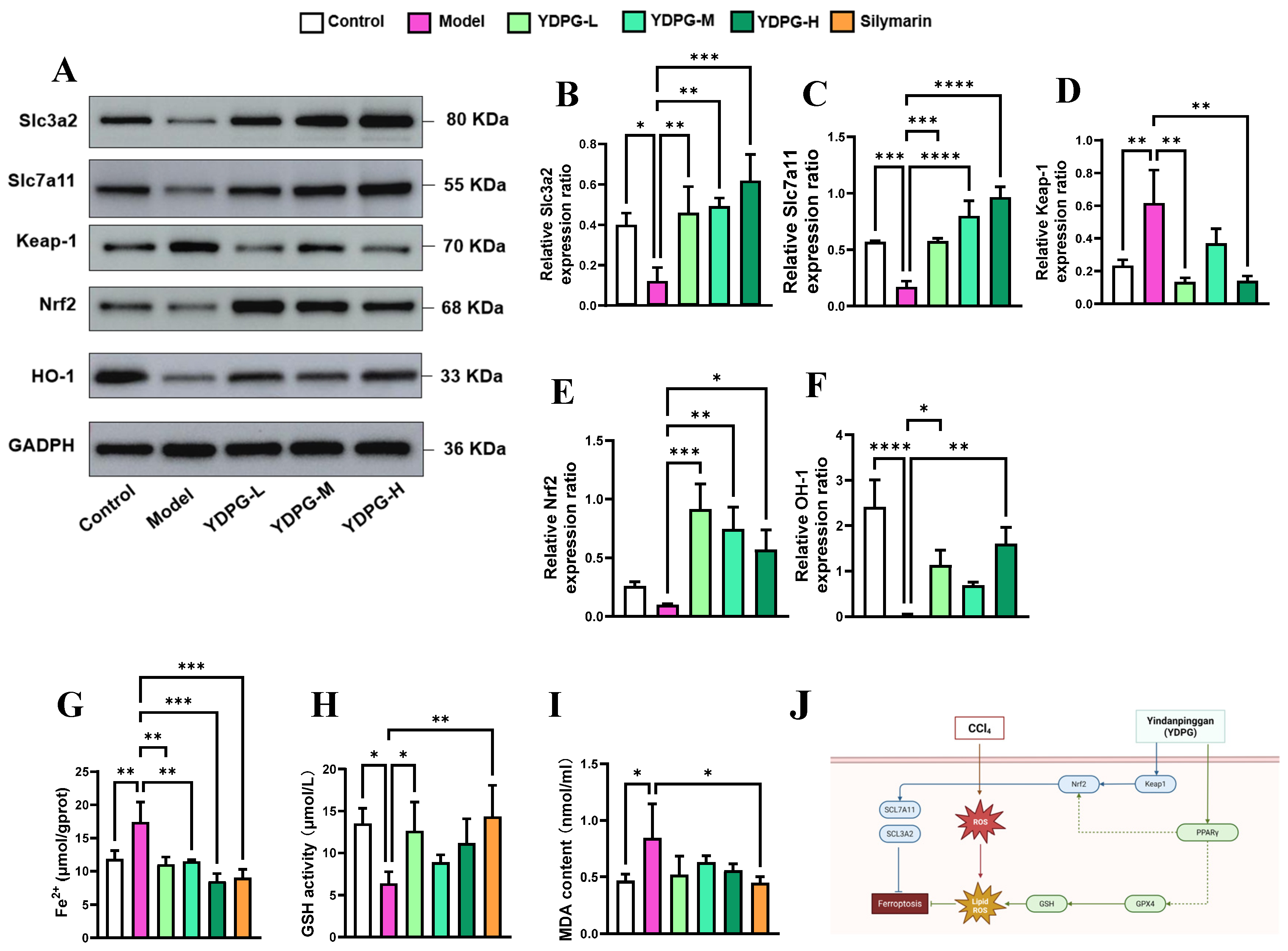 2.5. YDPG Prevents CCL4-Induced Hepatocyte Ferroptosis
