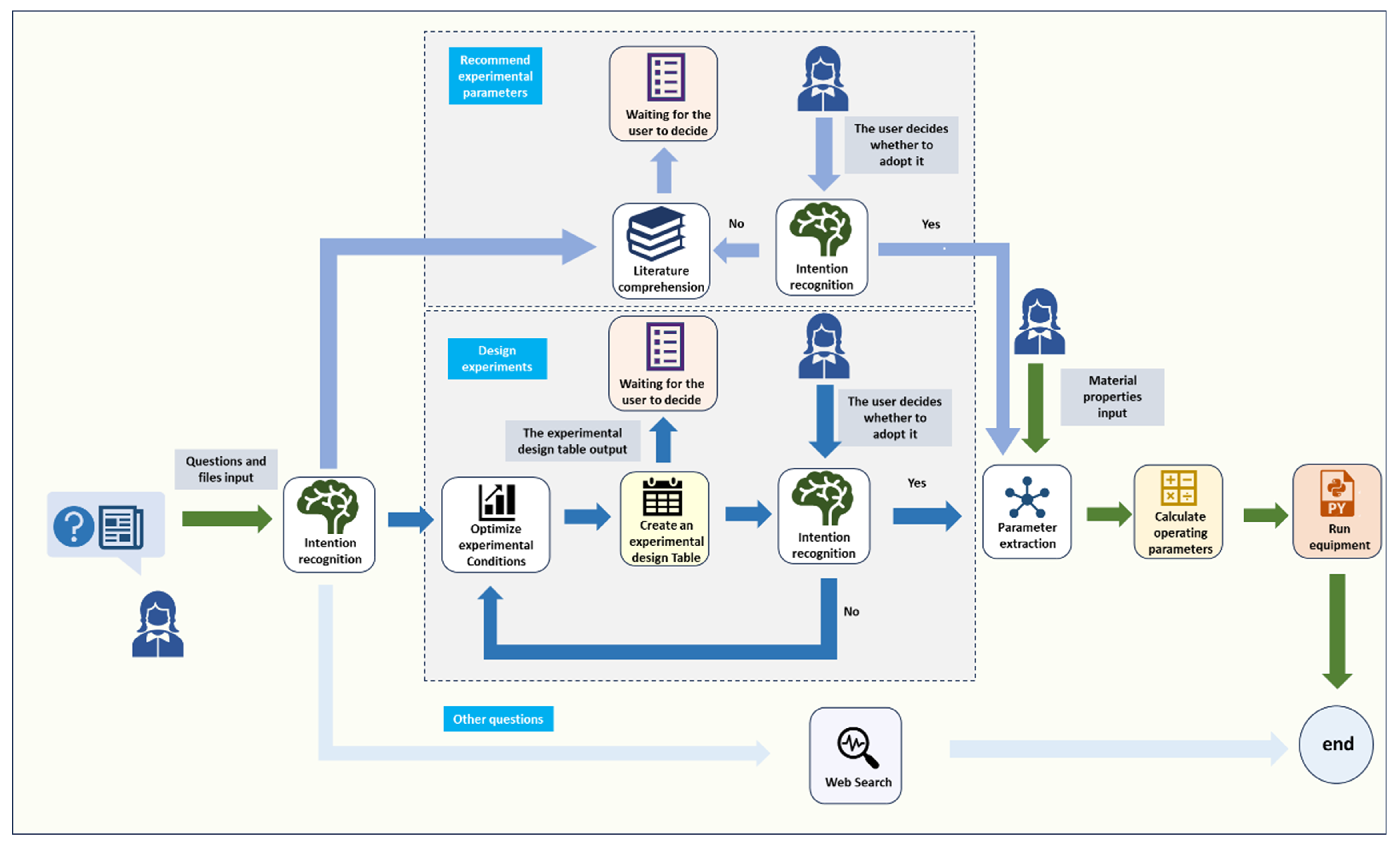 - Experimental condition optimization node: Qualitatively analyzes failed experiments due to improper conditions and generates optimized experimental ranges.