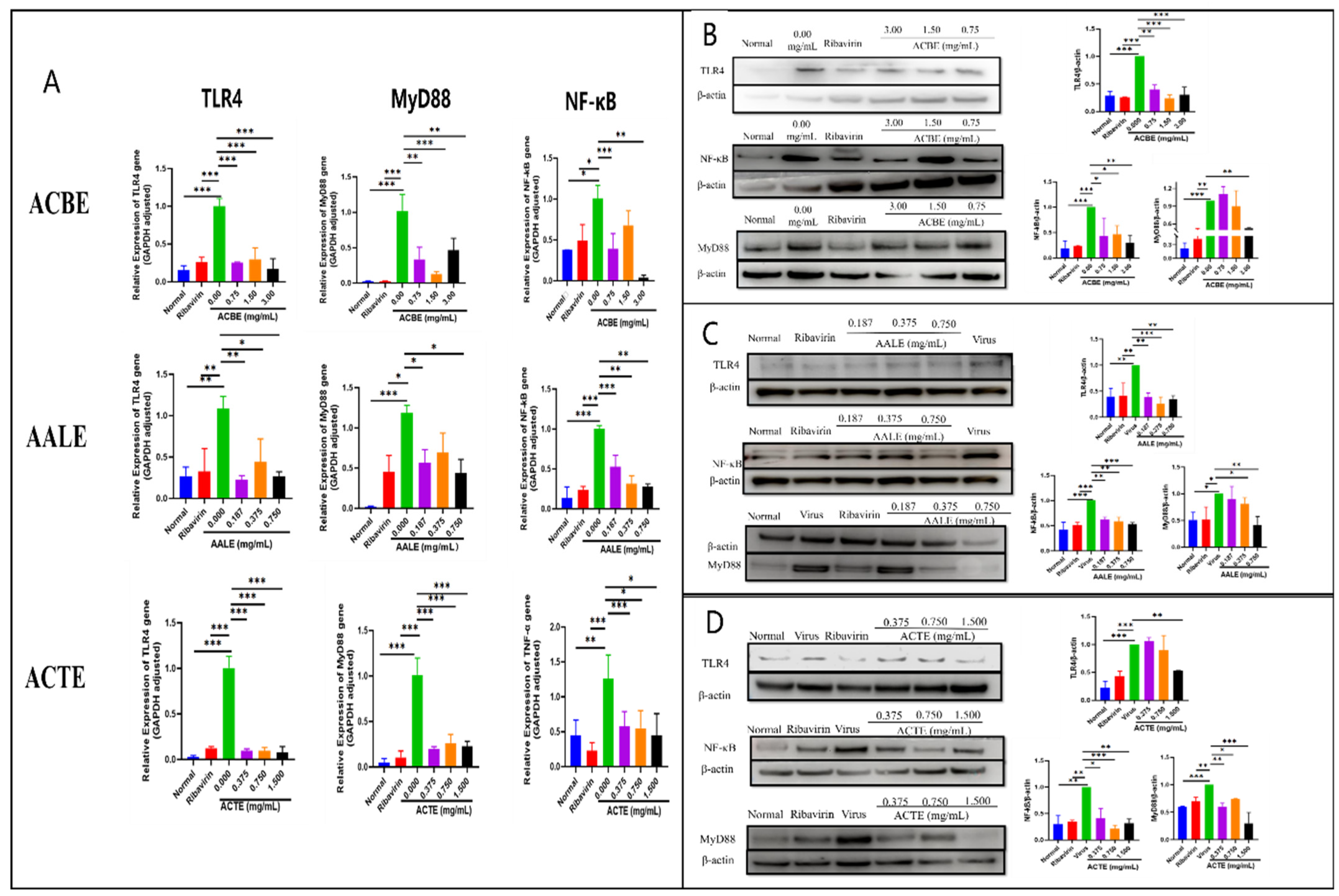 2.4.5. Effect of Artemisia L. Extracts on the Expression of Proteins Related to TLR4/NF-κB/MyD88 Signaling Pathway in MDCK Cells in the Treatment Group