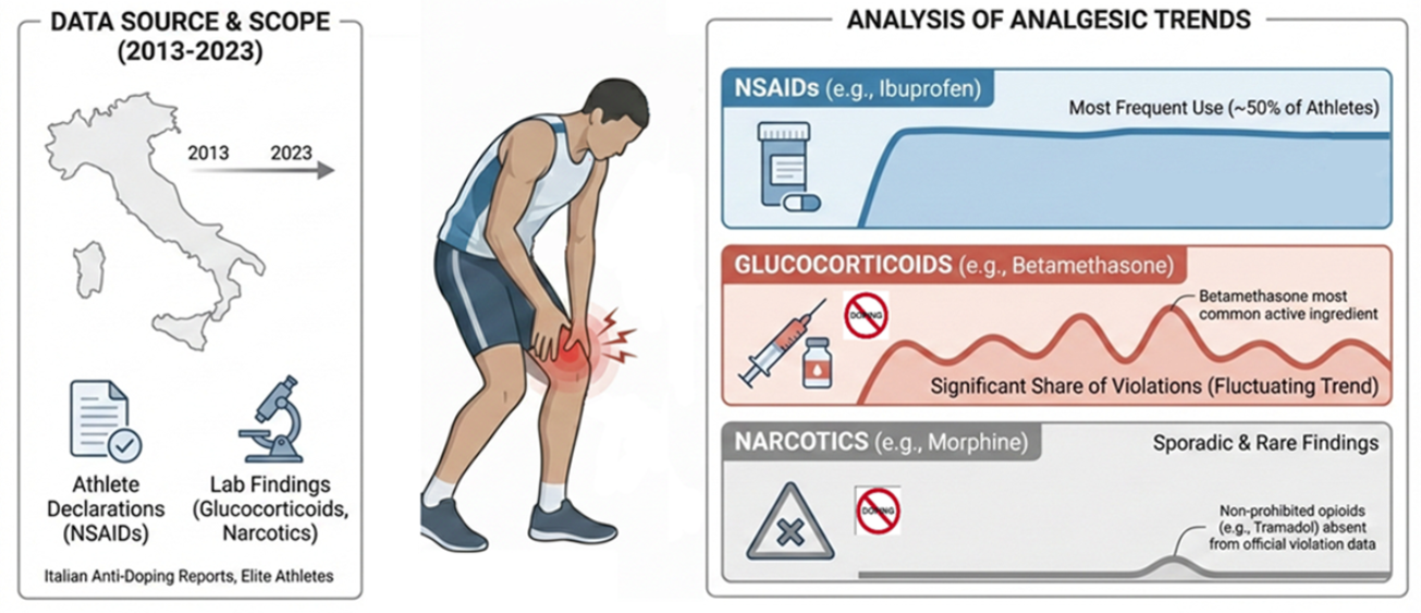 APA StyleRuggiero, M., Santamaria, S., Montesano, P., Ferrante, L., Russo, Y., & Mazzeo, F. (2026). Pain Management in Italian Elite Athletes: Trends in the Use of Non-Steroidal Anti-Inflammatory Drugs (NSAIDs), Glucocorticoids, and Narcotics in Anti-Doping Reports (2013–2023). Pharmaceuticals, 19(2), 298. https://doi.org/10.3390/ph19020298