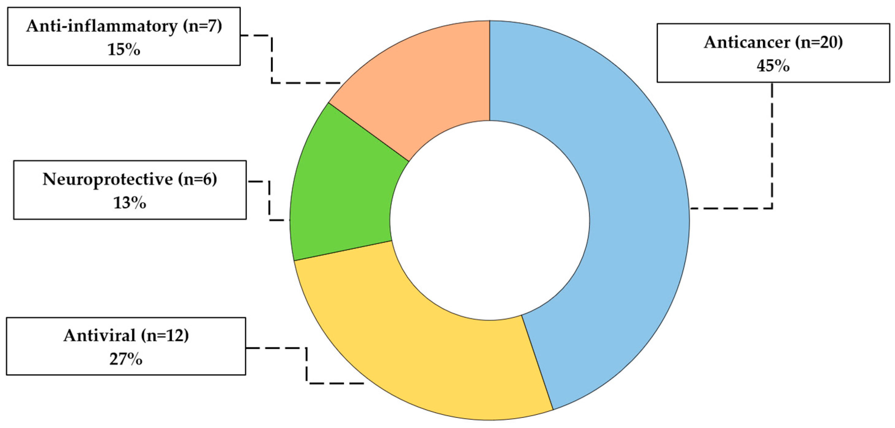 | Relevance | Direct relation to pharmaceutical applications, including multitarget ligands, drug design, or hybrid scaffolds (e.g., with thiazoles or ruthenium [38,39]) | Duplicates, inaccessible full texts, or low-quality/non-peer-reviewed sources |