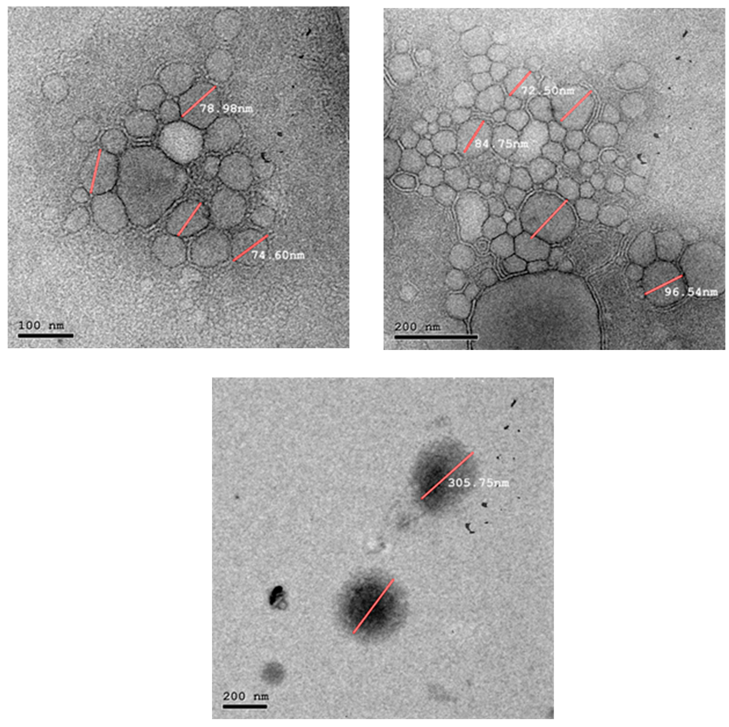 2.2. Morphological Examination of the Prepared Hybrid Nanocarriers