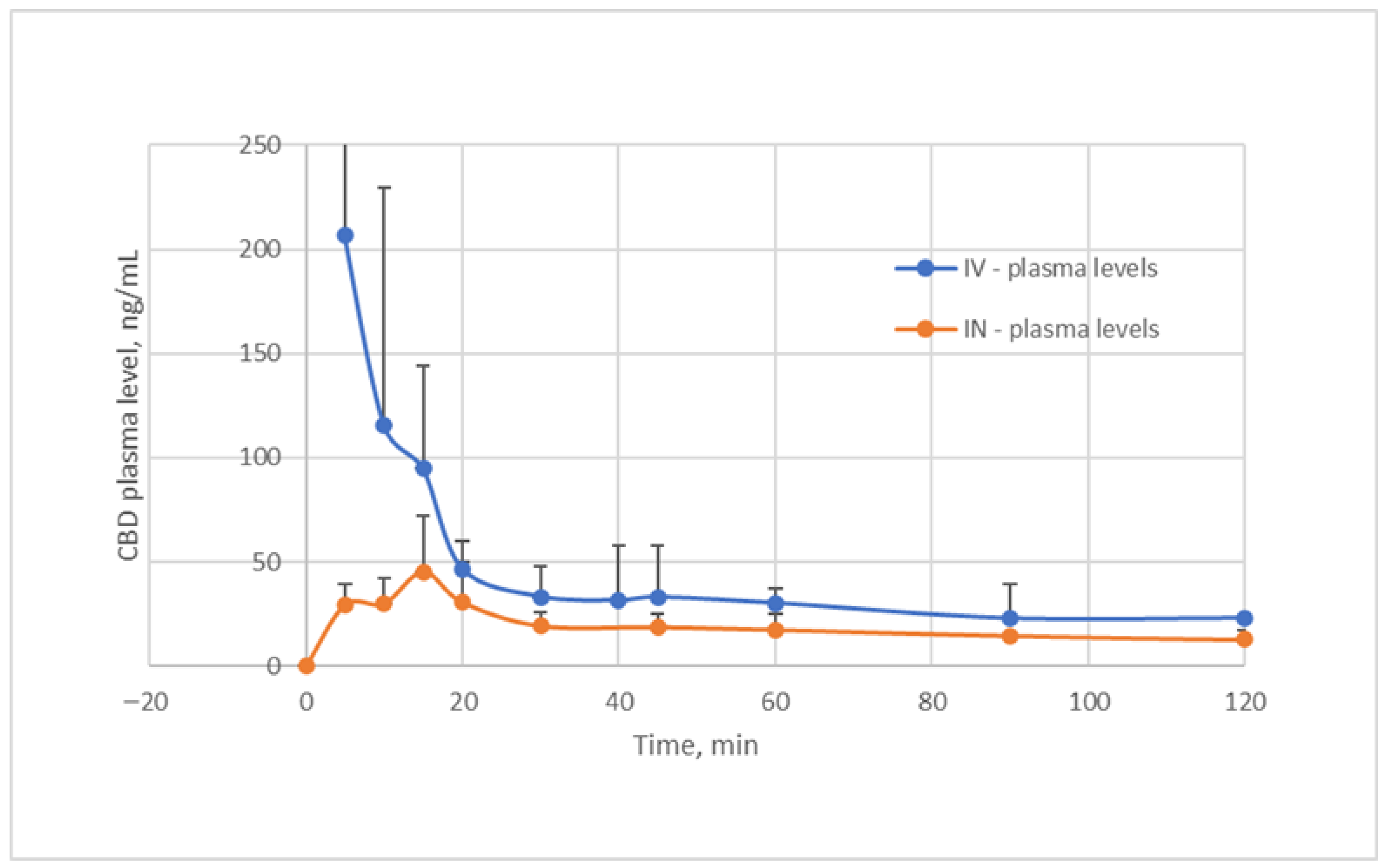 5]. CBD was detected as early as 0.5 min after IN administration of CBD solution with a