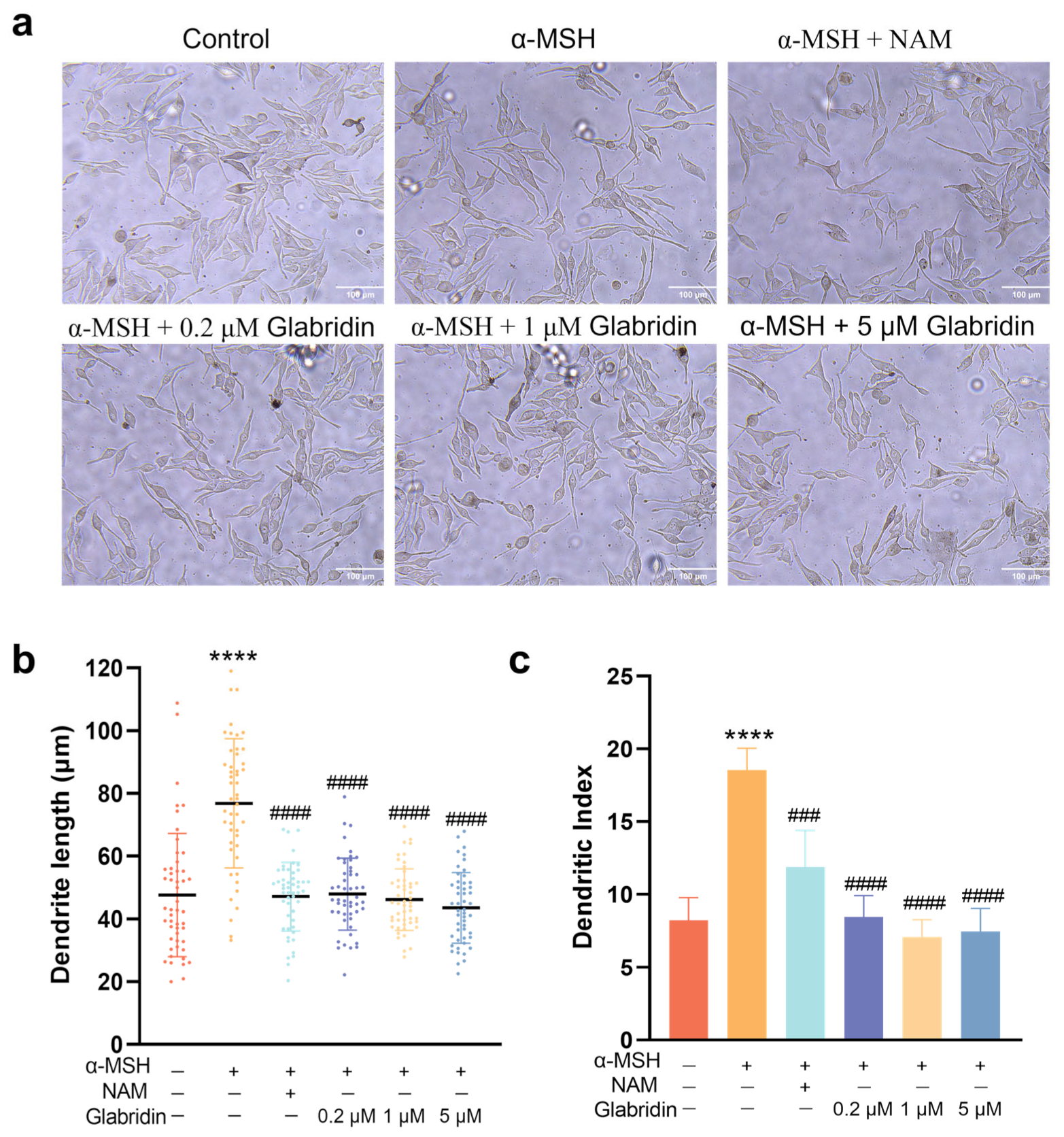 2.3. Effect of Glabridin on the Dendrites of MNT-1 Cells