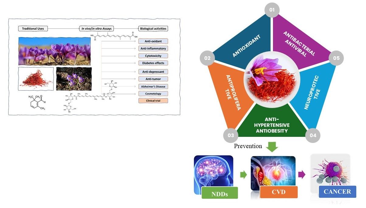 - Ghaffari, S.; Roshanravan, N. Saffron; An Updated Review on Biological Properties with Special Focus on Cardiovascular Effects. Biomed. Pharmacother. 2019, 109, 21–27. [Google Scholar] [CrossRef]