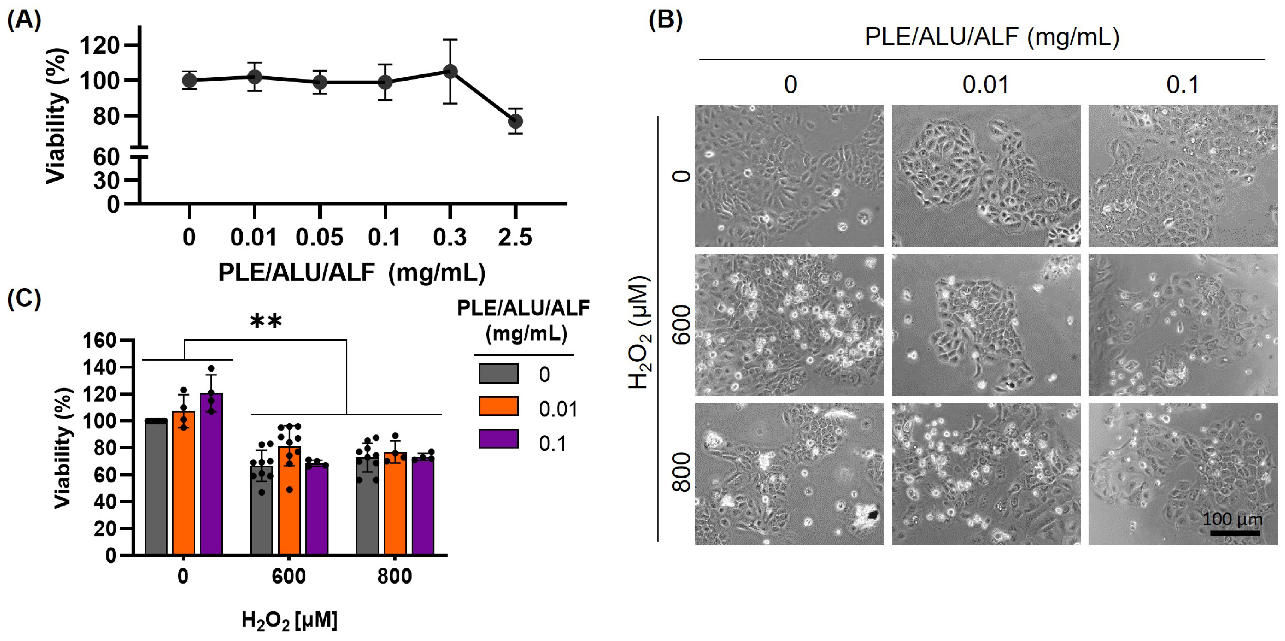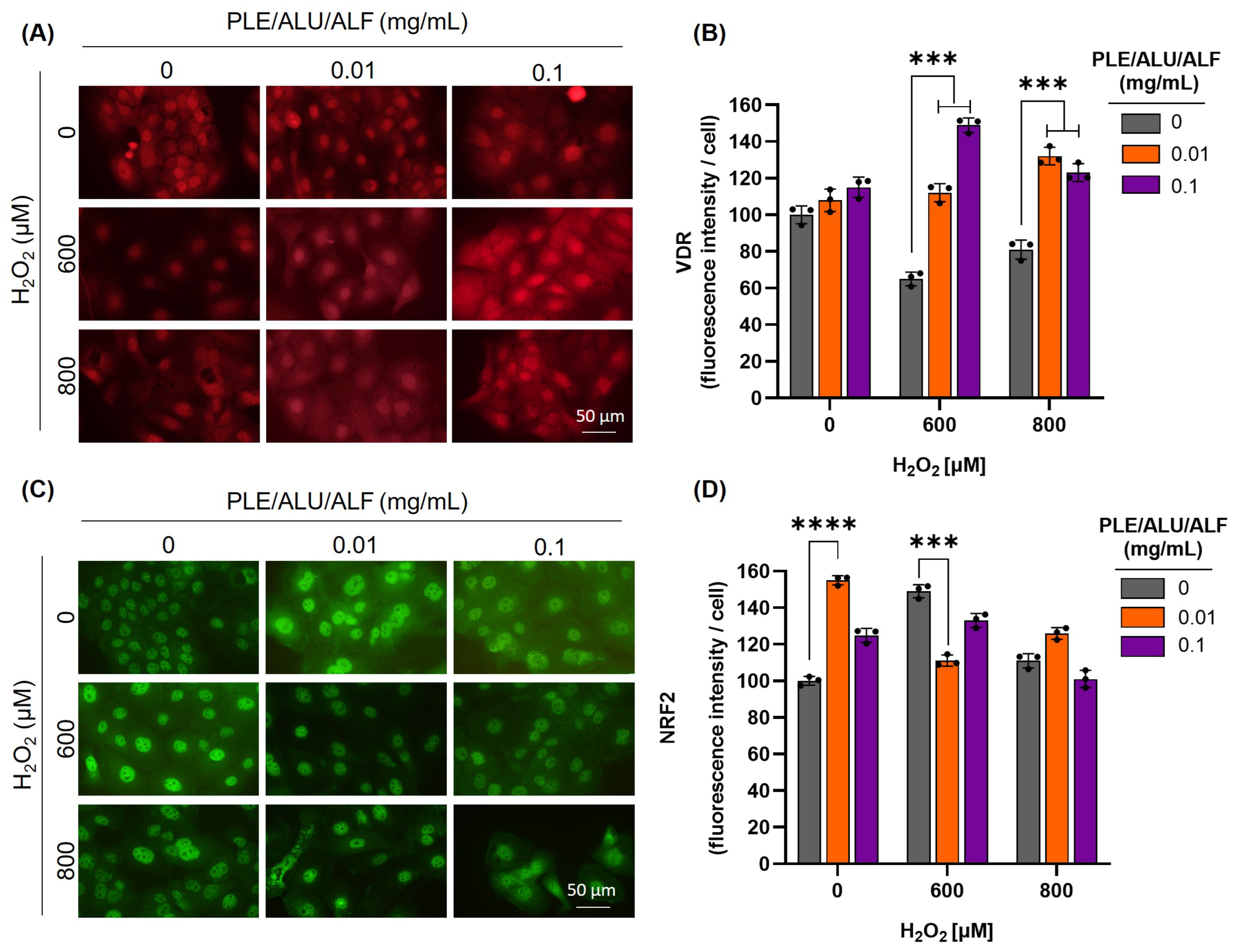 2.2. Treatments with PLE/ALU/ALF Prevent VDR Repression Induced by Oxidative Stress in HaCaT Cells