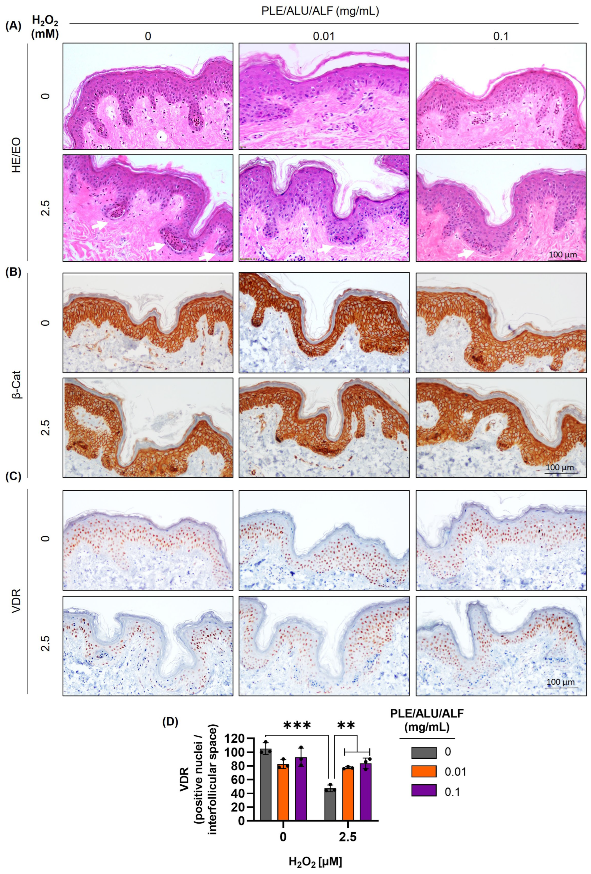 2.3. PLE/ALU/ALF Treatments Prevent VDR Repression Induced by Oxidative Stress in Ex Vivo Models