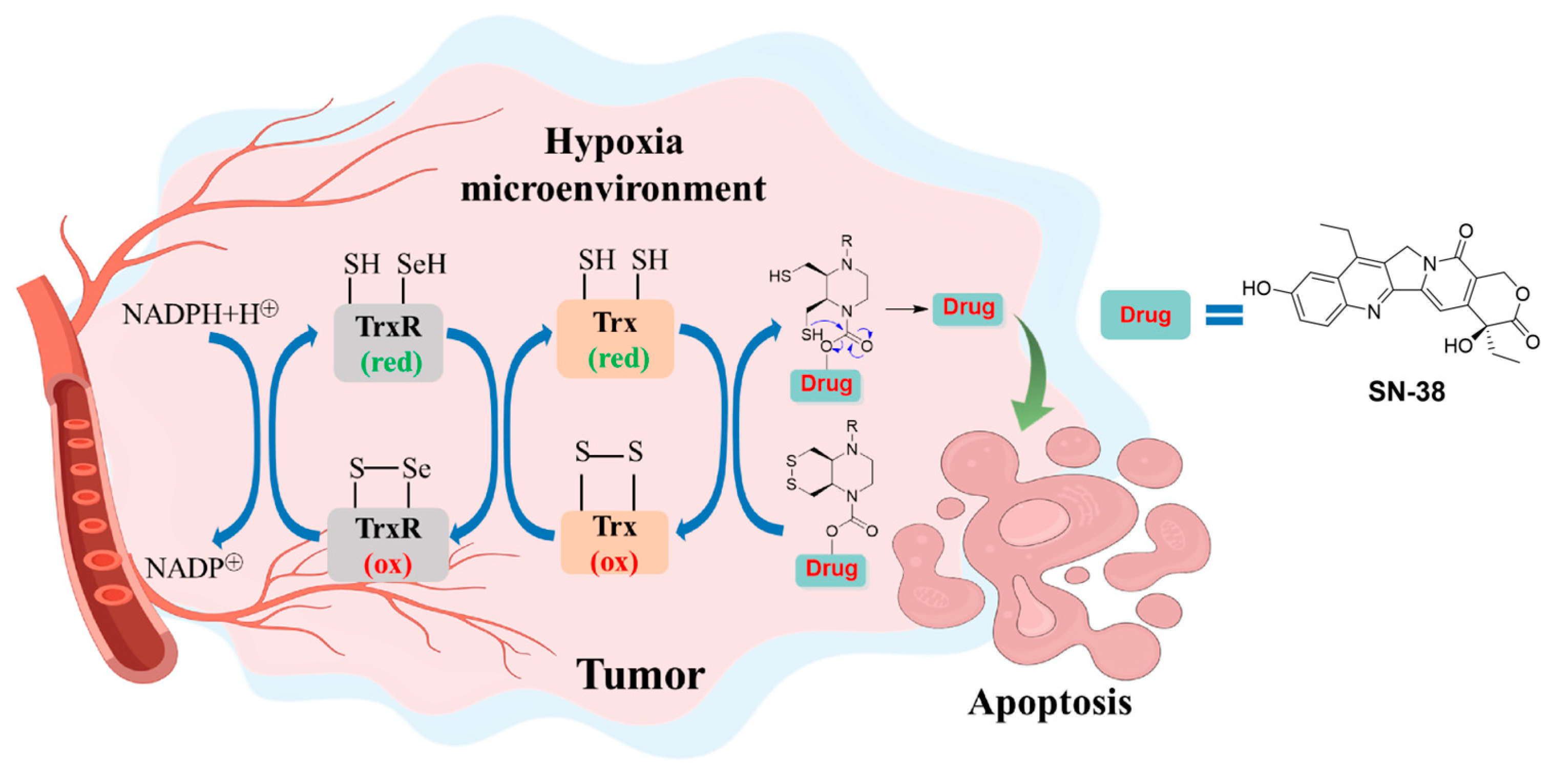 Dong T, Xu J, Wang X, Sun Z, Wang S, Chen F, Zhu H, Zhang X, Xu S, Zheng C, et al. Rational Design, Synthesis, and Systematic Evaluation of Redox-Responsive SN-38 Prodrugs for Selective Activation in Hypoxic Tumor Microenvironments. Pharmaceuticals. 2026; 19(3):515. https://doi.org/10.3390/ph19030515