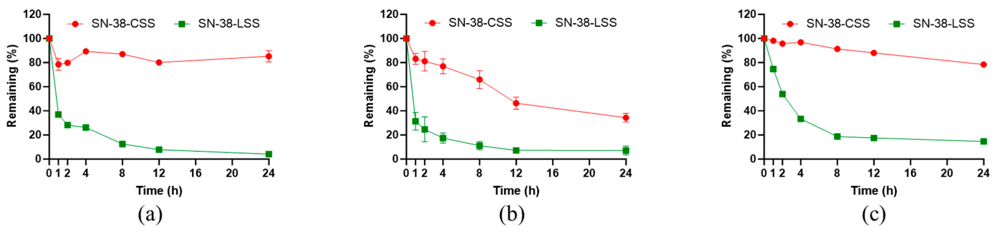 | SN-38-CSS | 2.18 ± 0.45 | 0.39 ± 0.05 | 0.34 ± 0.09 | 2.41 ± 0.93 | 2.46 ± 1.04 | 0.34 ± 0.13 |