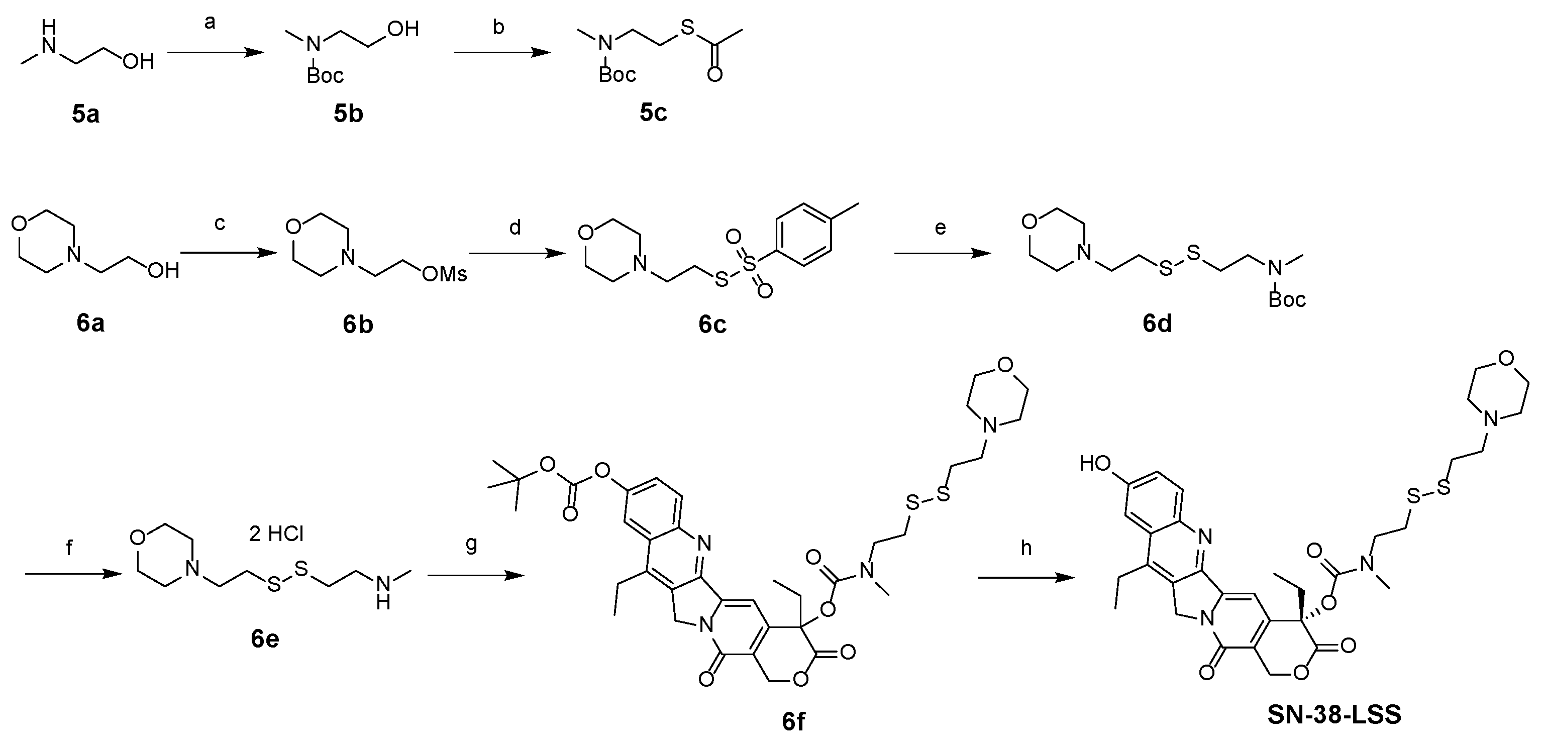 - Chen, J.; Zhou, L.; Wang, C.; Sun, Y.; Lu, Y.; Li, R.; Hu, X.; Chen, M.; Chen, L.; Chai, K.; et al. A multifunctional SN38-conjugated nanosystem for defeating myelosuppression and diarrhea induced by irinotecan in esophageal cancer. Nanoscale 2020, 12, 21234–21247. [Google Scholar] [CrossRef]