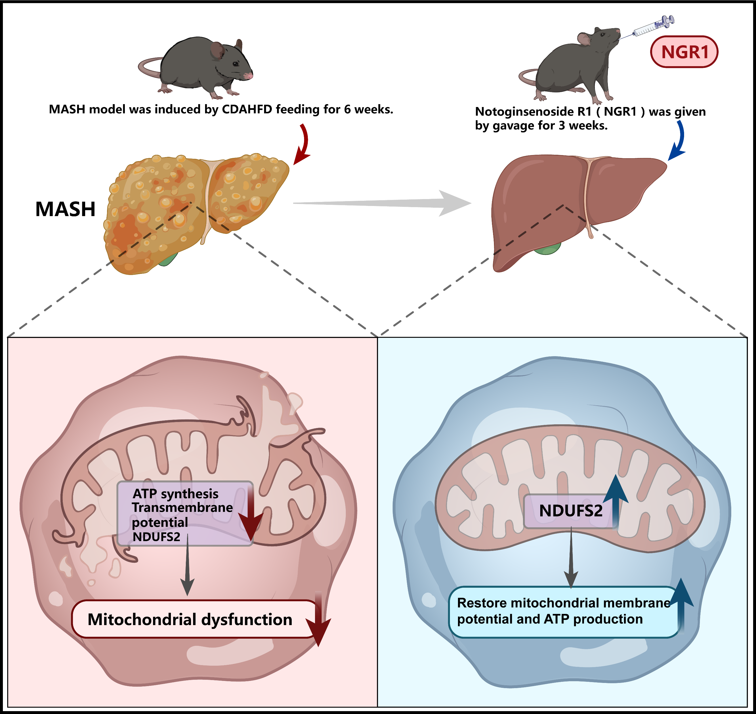 Liu M, Liu D, Zhang Q, Zhang R, Aa J, Wang G, Xie Y. NGR1 Ameliorates Hepatocyte Steatosis and Mitochondrial Dysfunction Associated with the Restoration of NDUFS2. Pharmaceuticals. 2026; 19(4):524. https://doi.org/10.3390/ph19040524