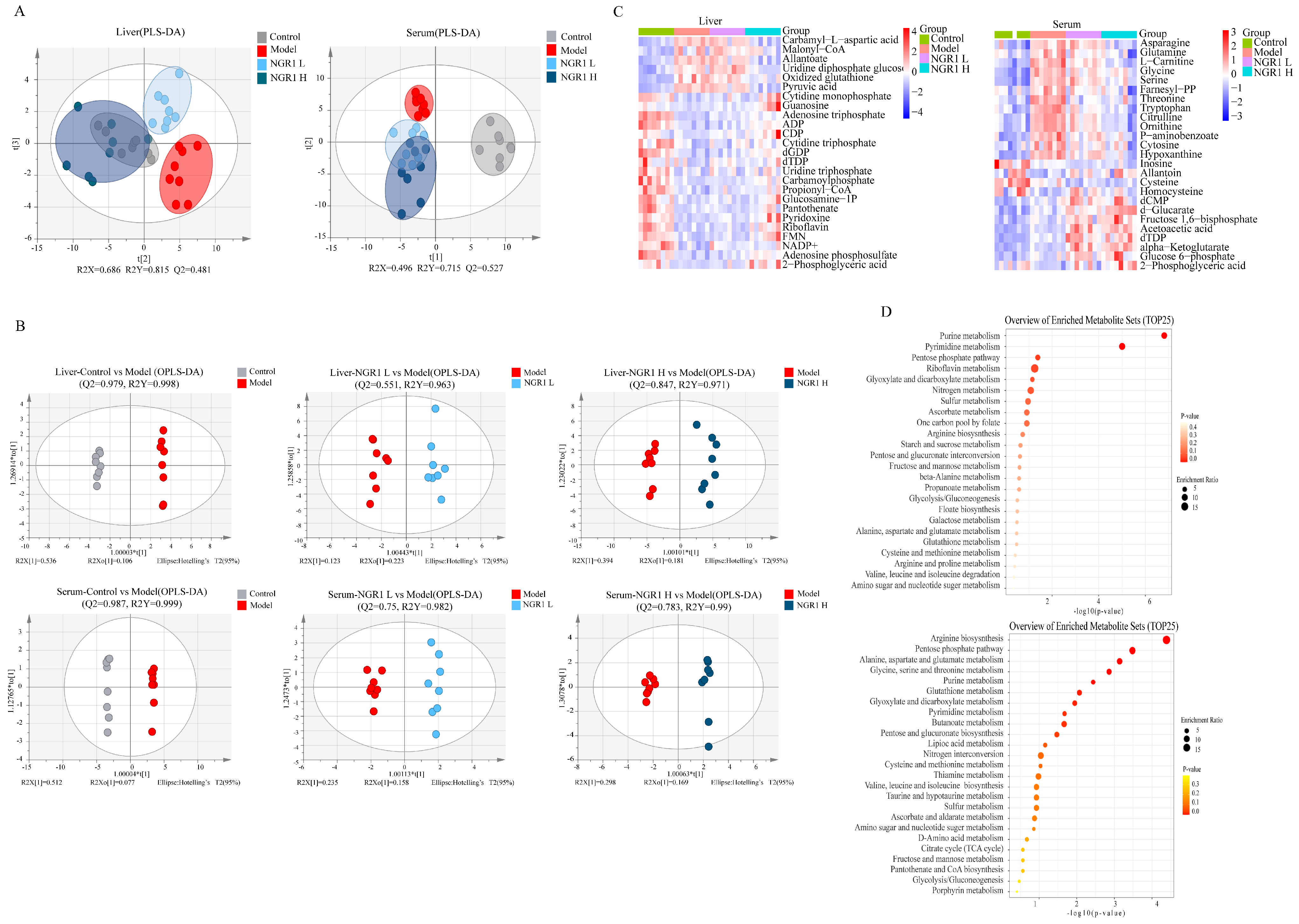 2.3. Metabolic Profile Characterization in Liver and Serum of MASH Mice