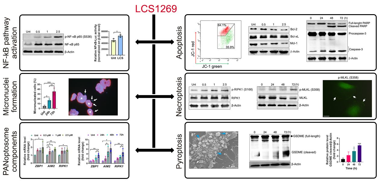 2.5. PANoptosis Induced by LCS1269 May Arise from Polyploidization, Which Is Accompanied by the Formation of Micronucleated Cells with Either a Ruptured or Collapsed Nuclear Envelope