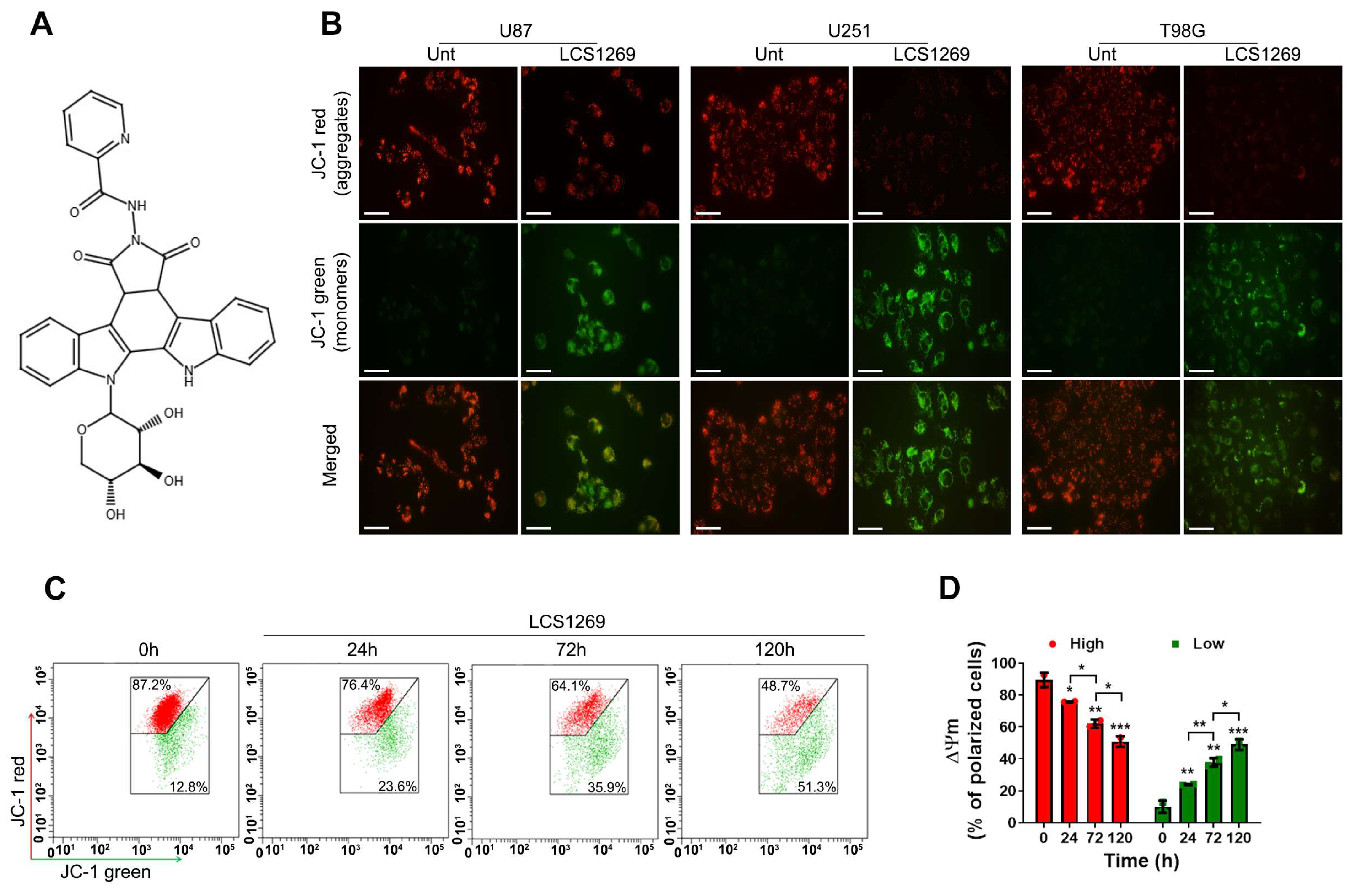 2.1. LCS1269 Provokes a Potential Mitochondrial Membrane Collapse and Promotes Both Intrinsic and Extrinsic Apoptotic Pathway Activation
