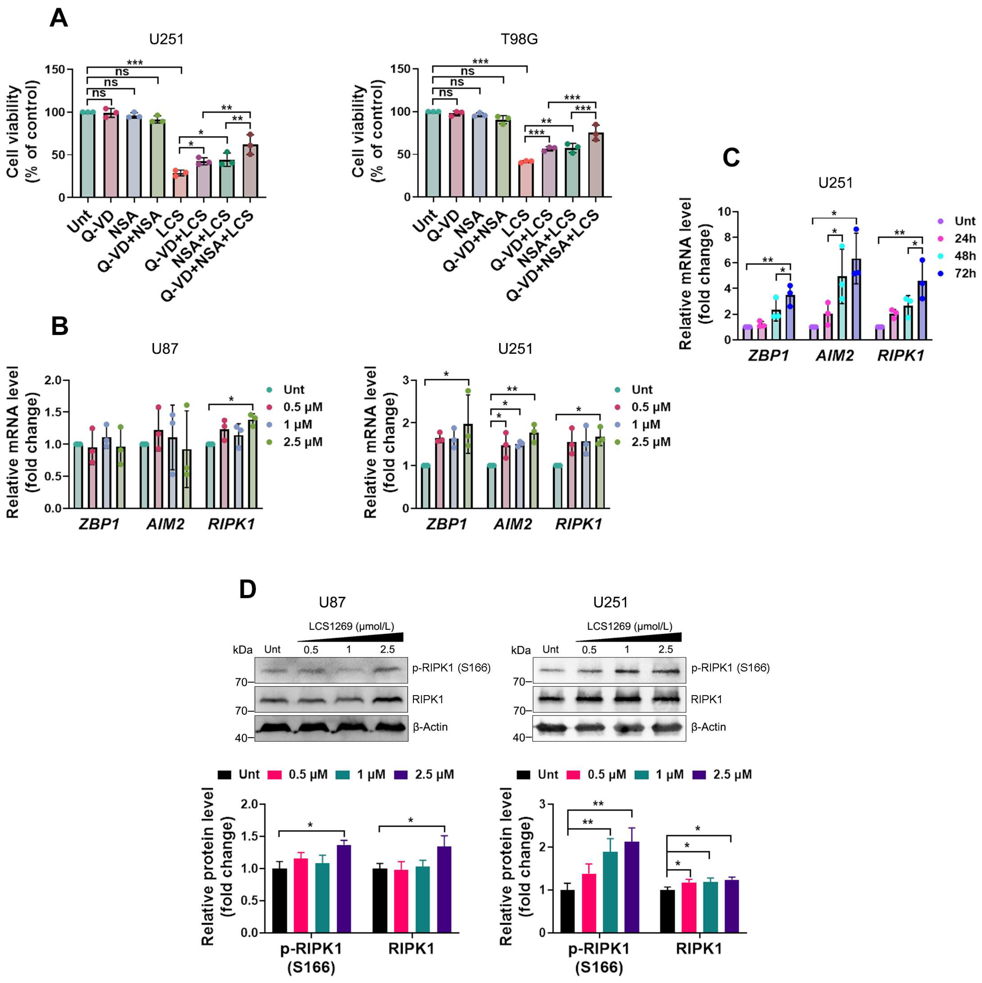 2.4. LCS1269 Mediates the Differential Regulation of Gene Expression of Either RIPK1 Only or the Integrated ZBP1-, AIM2-, and RIPK1-PANoptosome Components