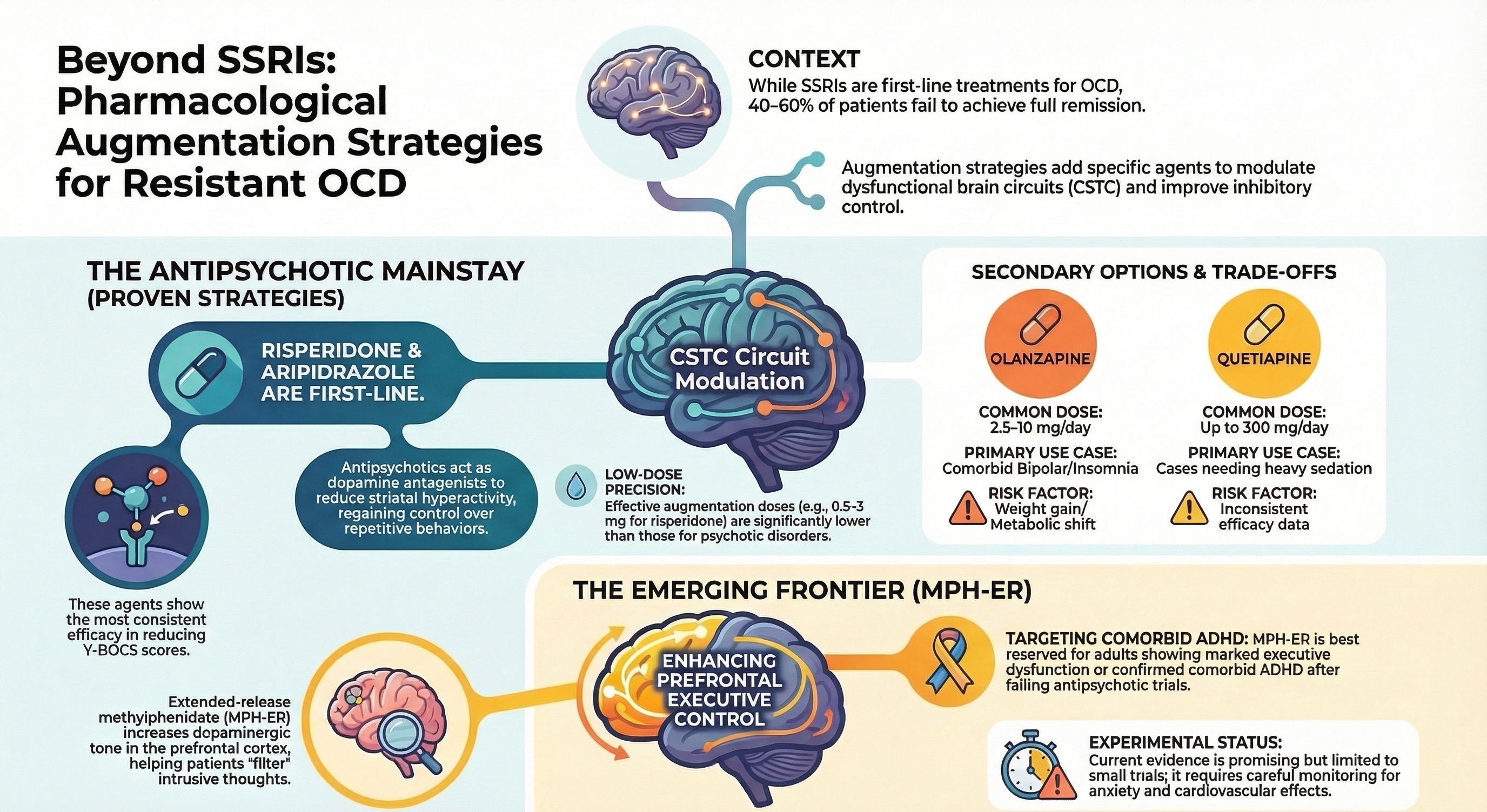 - Studies analyzing augmentation or pharmacological strategies in OCD, including both empirical research and theoretical reviews;