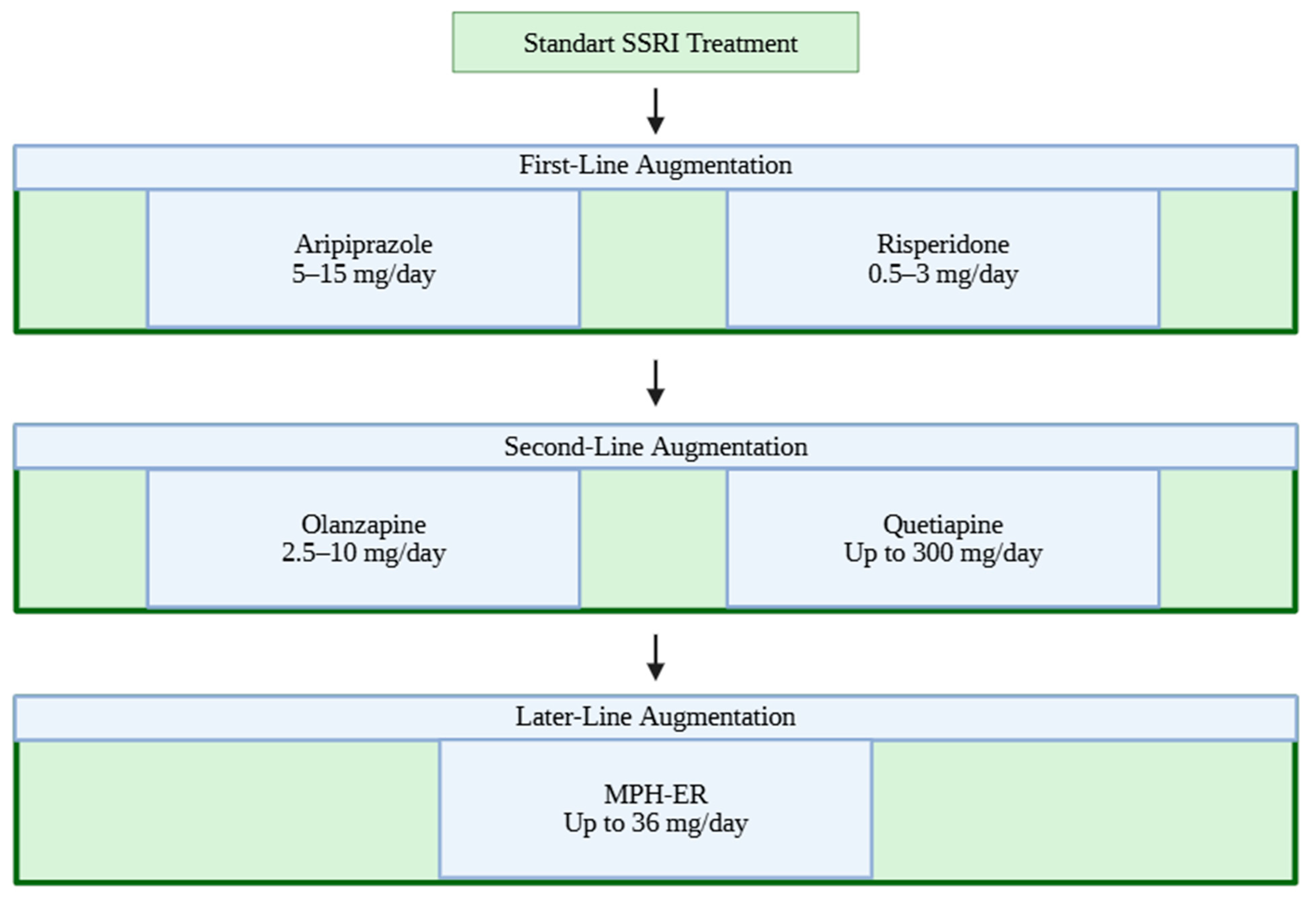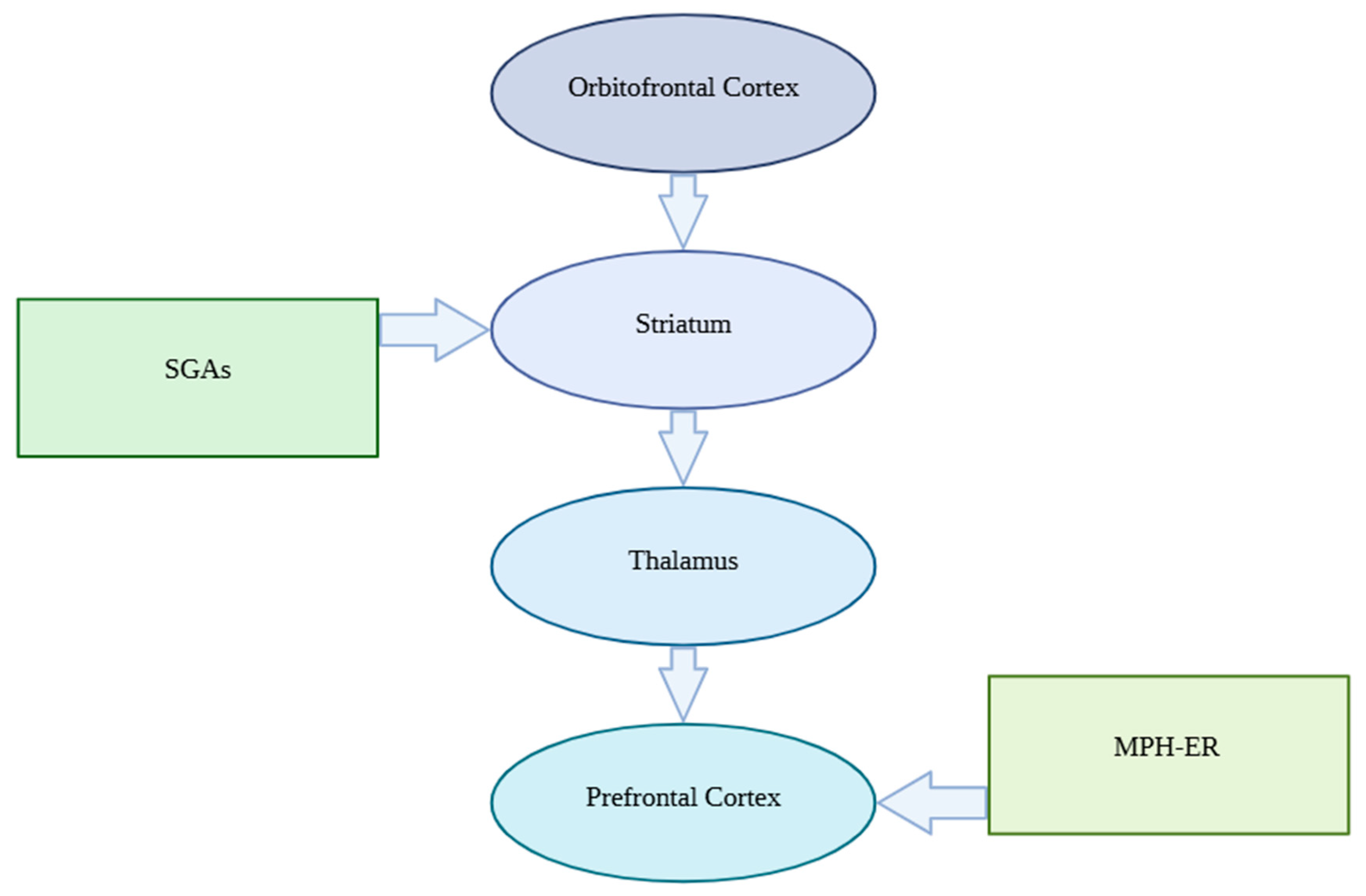- Mudgal, V.; Mishra, S.; Gupta, U.; Bagul, K.R. Role of methylphenidate augmentation in treatment-resistant obsessive-compulsive disorder: A case series. Cureus 2025, 17, e37836. [Google Scholar] [CrossRef]