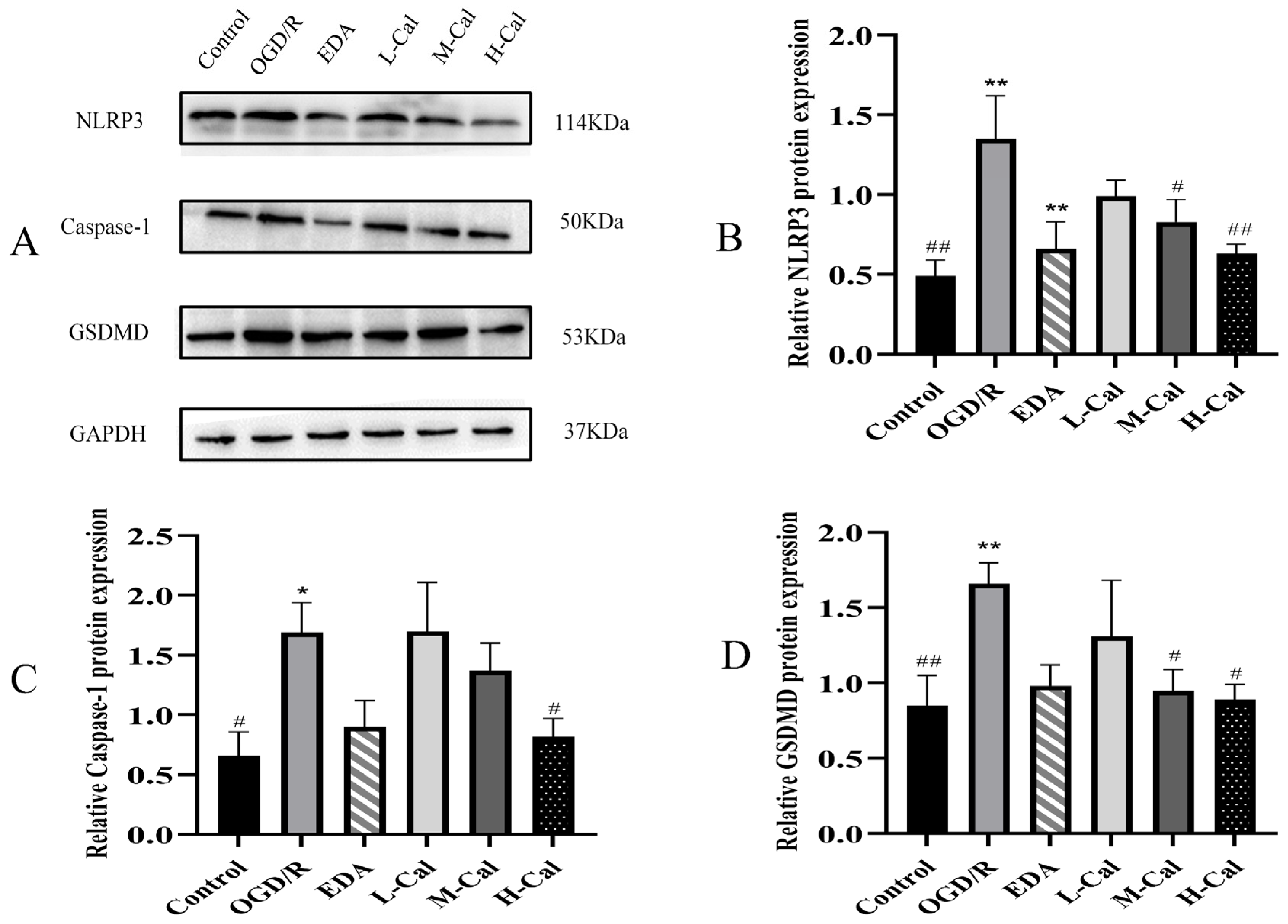 4.4.1. Determination of Protein Expression Levels Determination of NLRP3, GSDMD, Caspase-1, Caspase-1 p20 and ASC in OGD/R HT22 Cells by WB