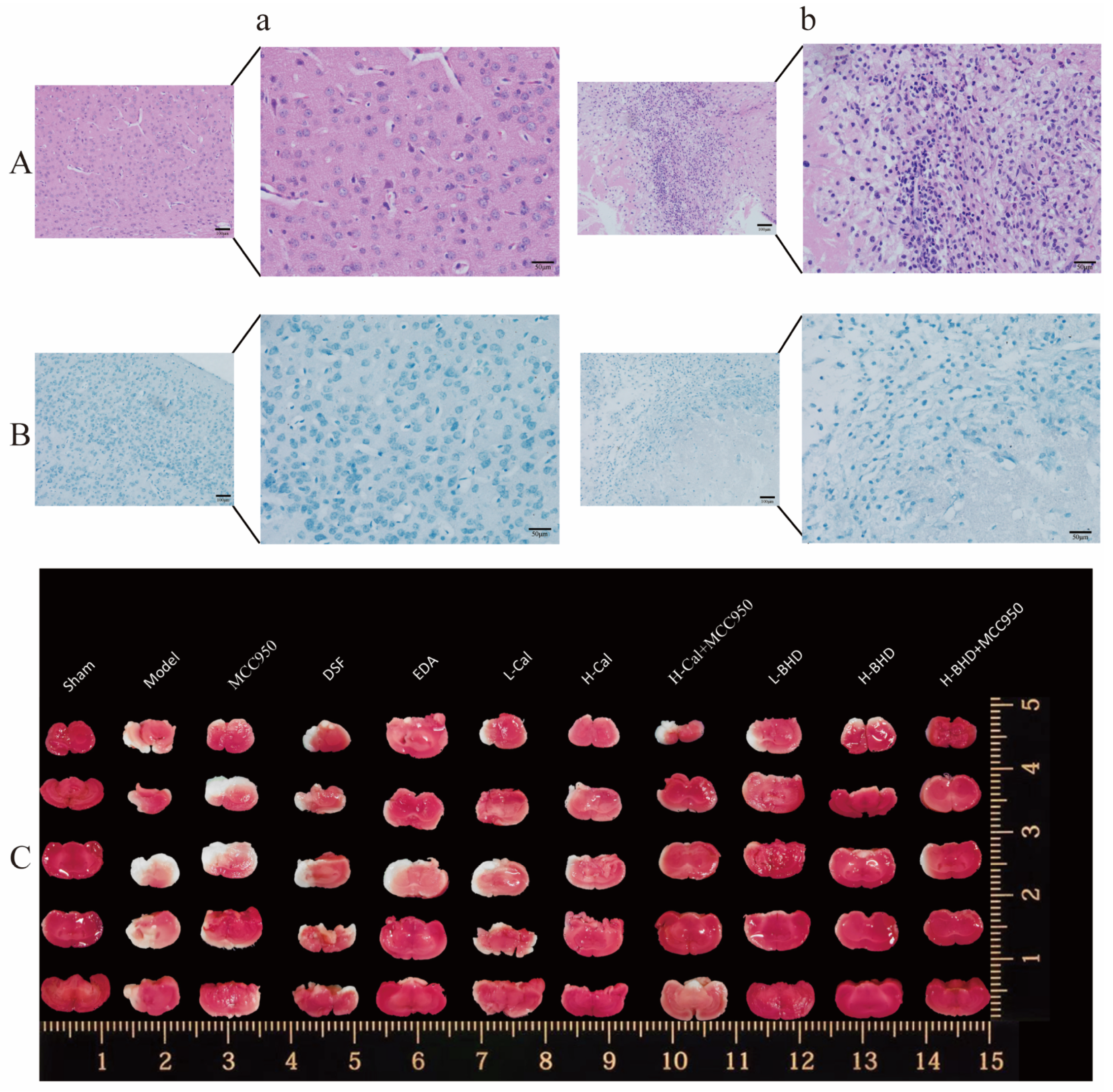 2.6. Neuroprotective Effect of BHD on the pMCAO Mice