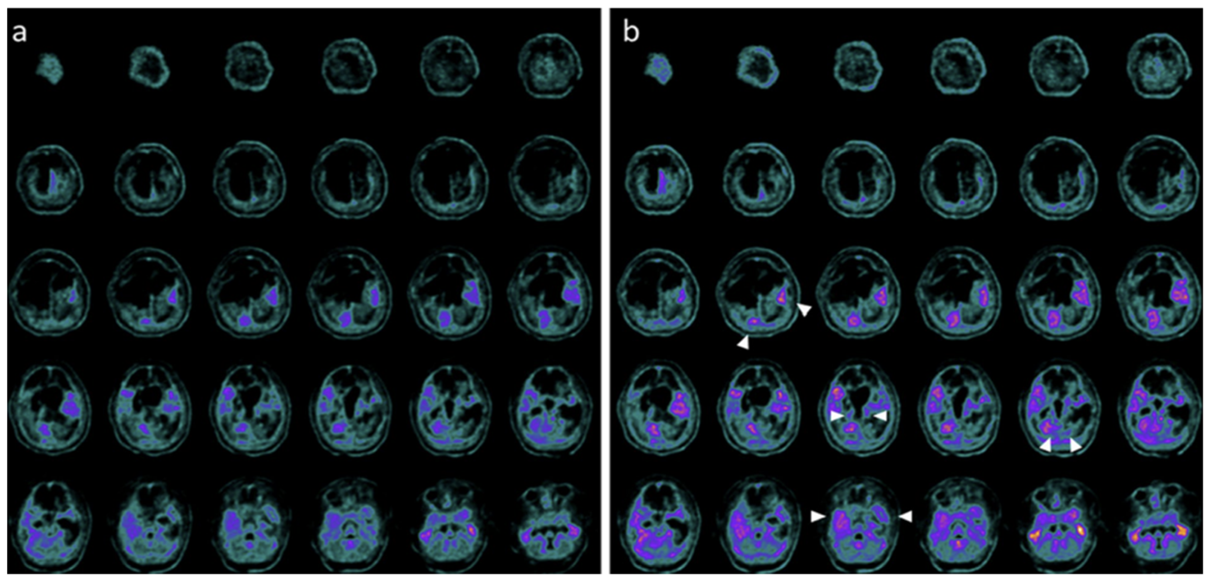 Figure 7), while SPECT demonstrated improved perfusion in the caudate nuclei, putamen, and thalami [