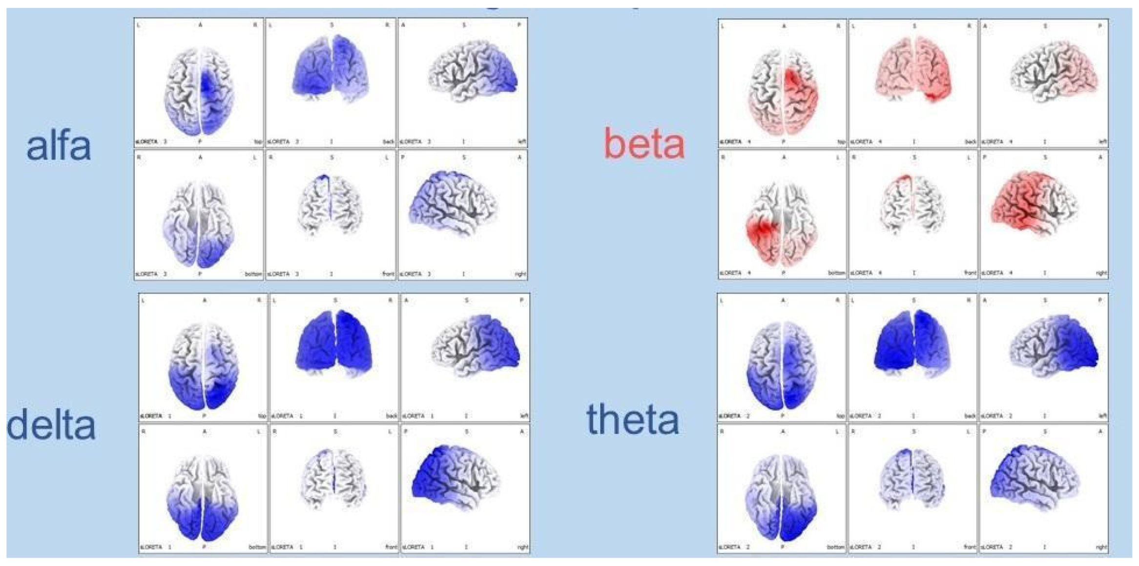Following intranasal NGF treatment, functional neuroimaging showed objective improvements. PET demonstrated increased glucose metabolism in selected cortical and subcortical regions, supported by single-photon emission computed tomography (SPECT) evidence of enhanced cerebellar perfusion. EEG evolved from a near-isoelectric pattern to organized 4–5 Hz theta–delta background activity with diffuse fast rhythms (