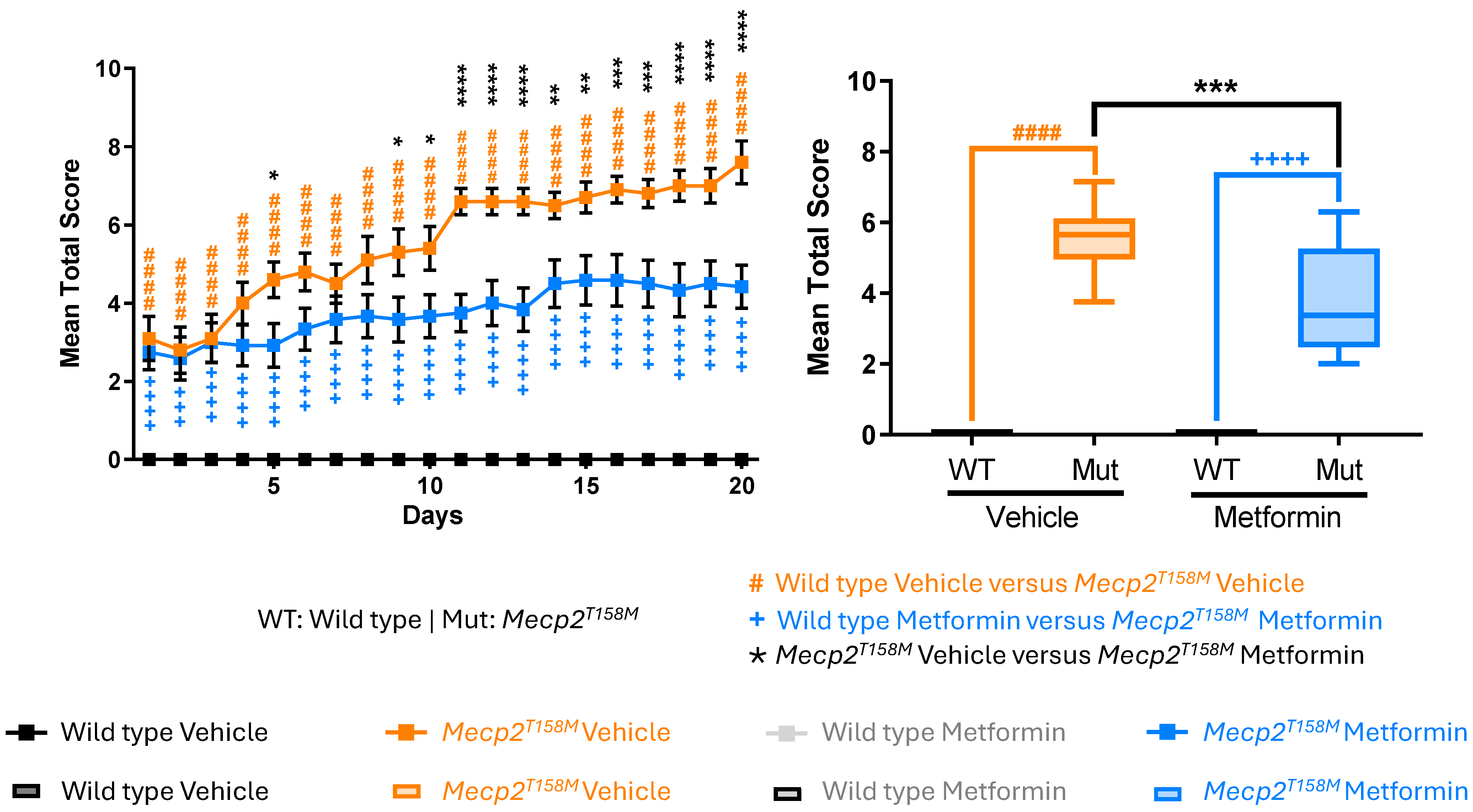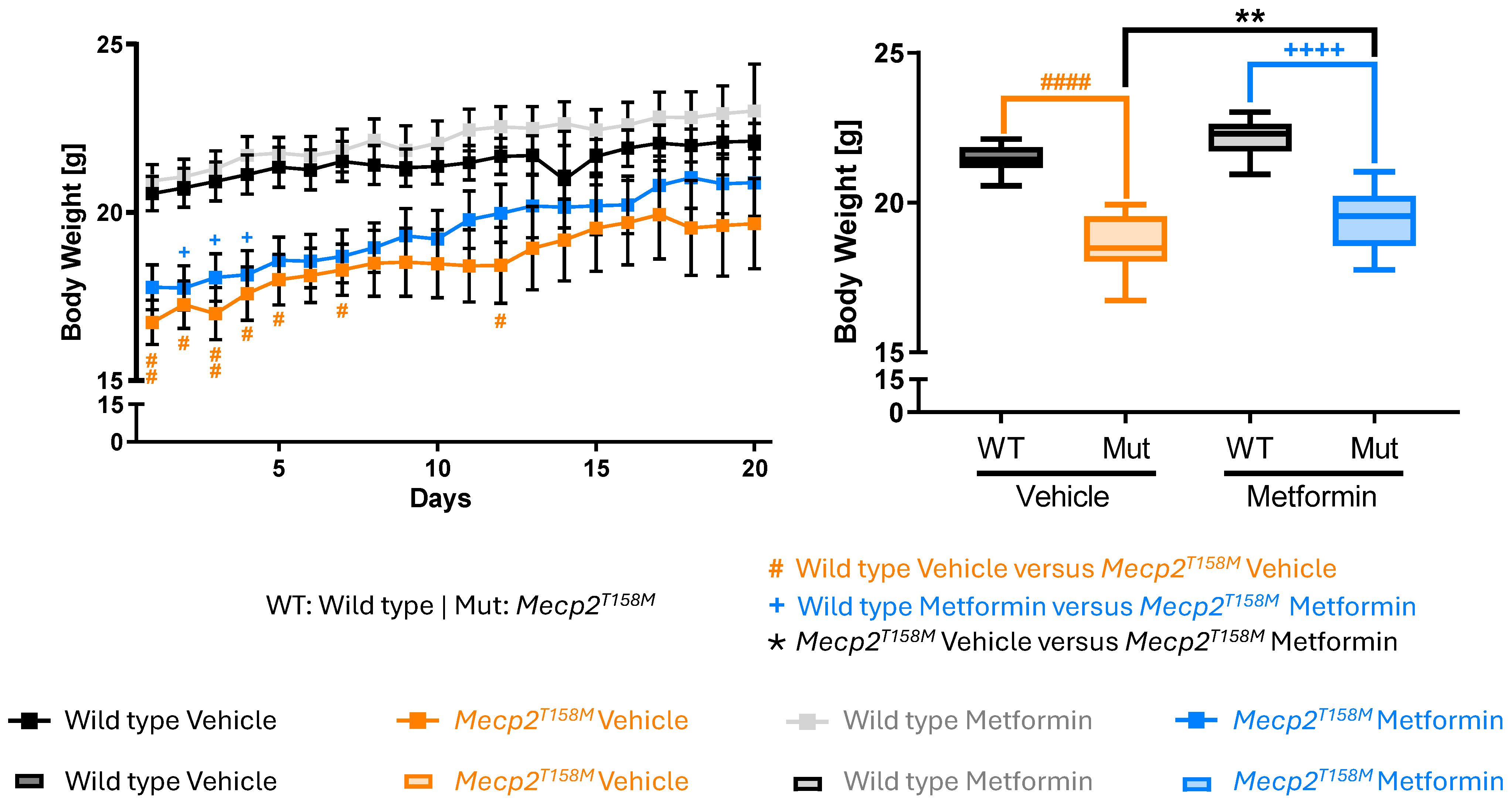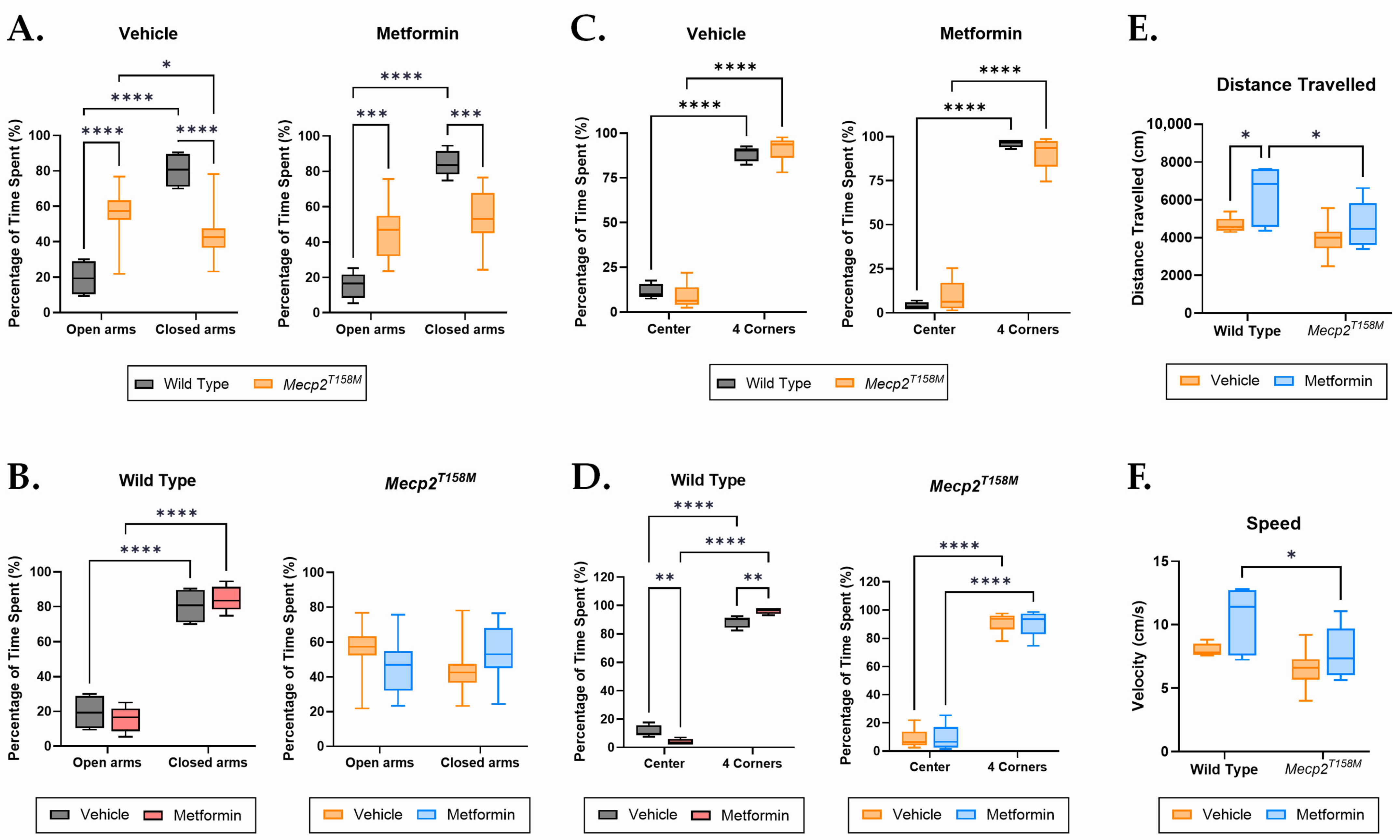 2.3. Differential Responses to Metformin in the Wild Type and Hemizygous Male Mecp2T158M Mice During the Open Field Test