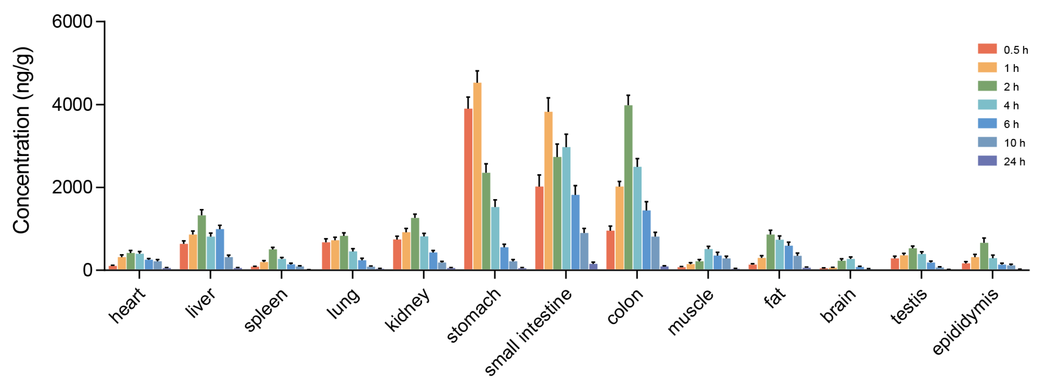 | AUC0–∞ (μg·h/L) | 3207.37 ± 141.64 | 6929.95 ± 576.26 | 13,310.78 ± 1233.36 | 9647.54 ± 325.21 |