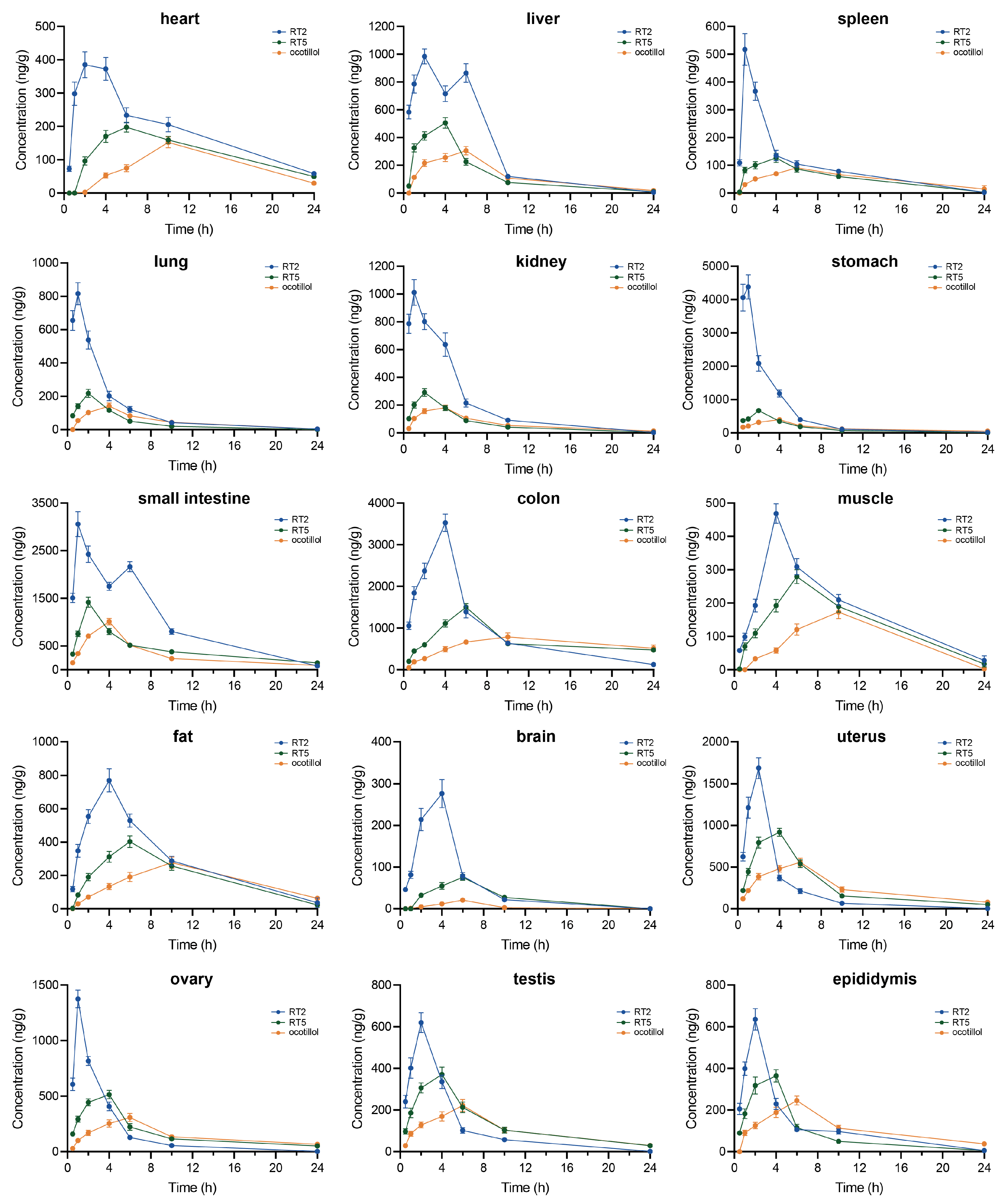 4.2.8. Tissue Distribution of RT2 in UC Rats