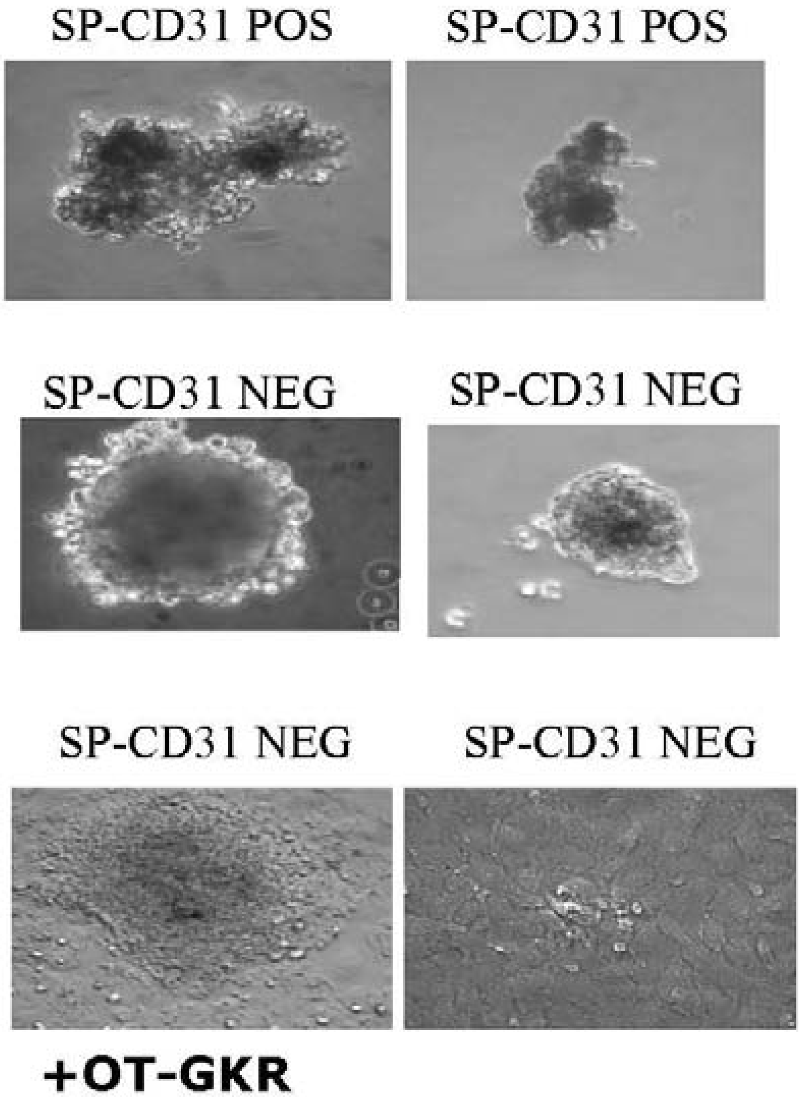 The presence of OT-Gly-Lys-Arg positively influences the shape and size of aggregates of the CD31 NEG subpopulation of side population cells (SPs) isolated from the rat heart.