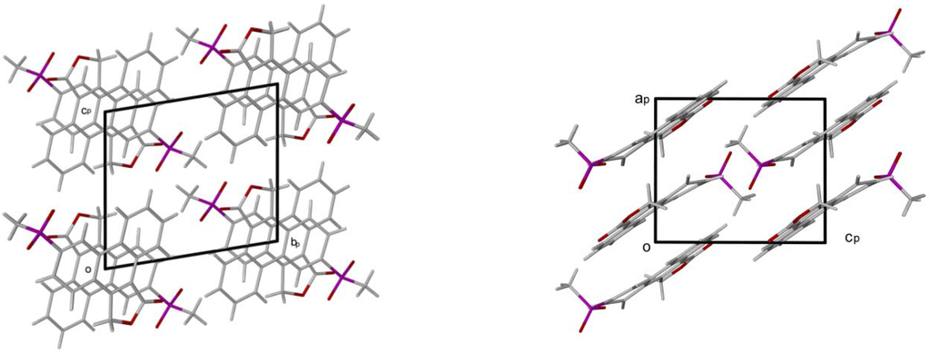 Packing diagrams of I down the a-axis and b-axis projections.