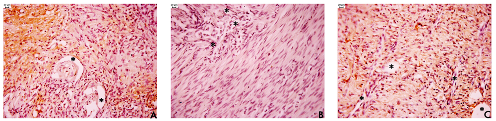 Histology methods: The stomachs of the rats subjected to the different treatments were removed and opened to expose the ulcer. The lesion was sectioned, and fixed in ALFAC solution (alcohol 900 mL, chloroform 100 mL and acetic acid 50 mL) for 24 h at 4 °C. Then the samples were processed for routine embedding in paraplast and cut into 7-μm section. The slides were observed after staining with haematoxylin and eosin (H&E) [13] and periodic acid-Schiff (PAS) [14] to observe mucus production. Then, neutrophils in the submucosa under the lesion were counted and angiogenesis was measured at 32,000× magnification (Leica microscope). The number of positively stained vessel cells (dark brown) at the ulcer margin was counted. The samples were analysed with a Leica microscope using the Leica Qwin Software (Leica-England).