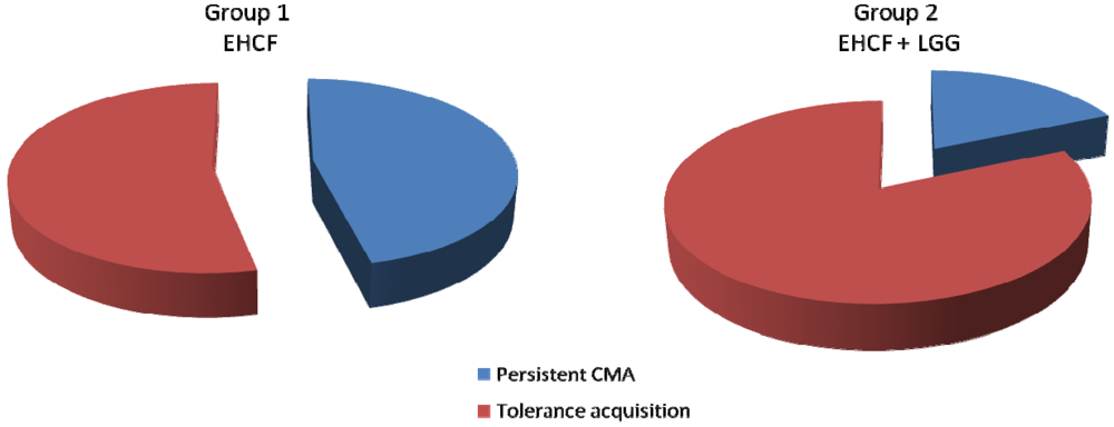 - Canani, R.B.; Nocerino, R.; Terrin, G.; Coruzzo, A.; Cosenza, L.; Leone, L.; Troncone, R. Effect of extensively hydrolyzed casein formula supplemented with Lactobacillus GG on tolerance acquisition in infants with cow’s milk allergy: A randomized trial. J. Allergy Clin. Immun. 2012, 129, 580–582. [Google Scholar]