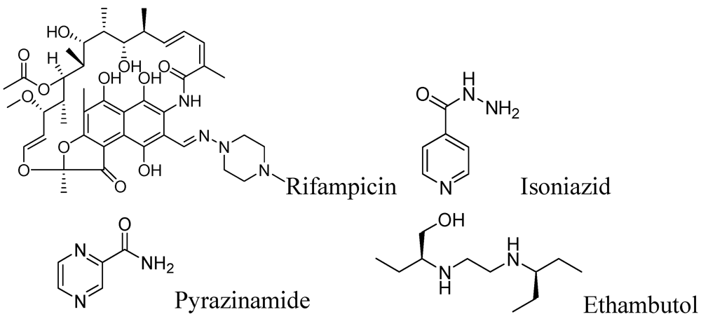 First line anti-tuberculosis drugs include rifampicin, isoniazid, pyrazinamide and ethambutol (Figure 1).