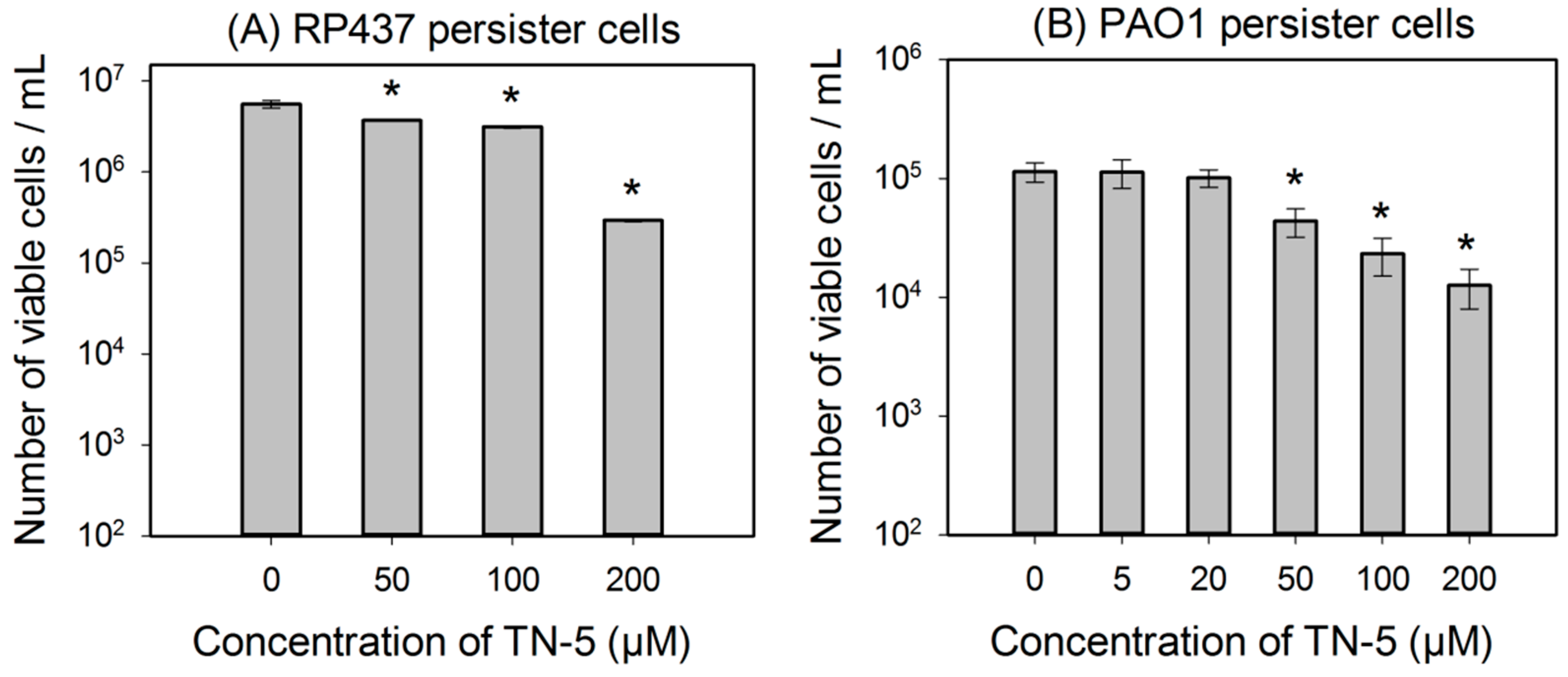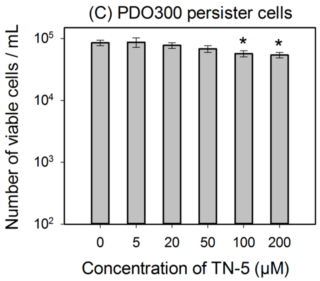 2.3. Antimicrobial Effects of TN-5 on Persister Cells