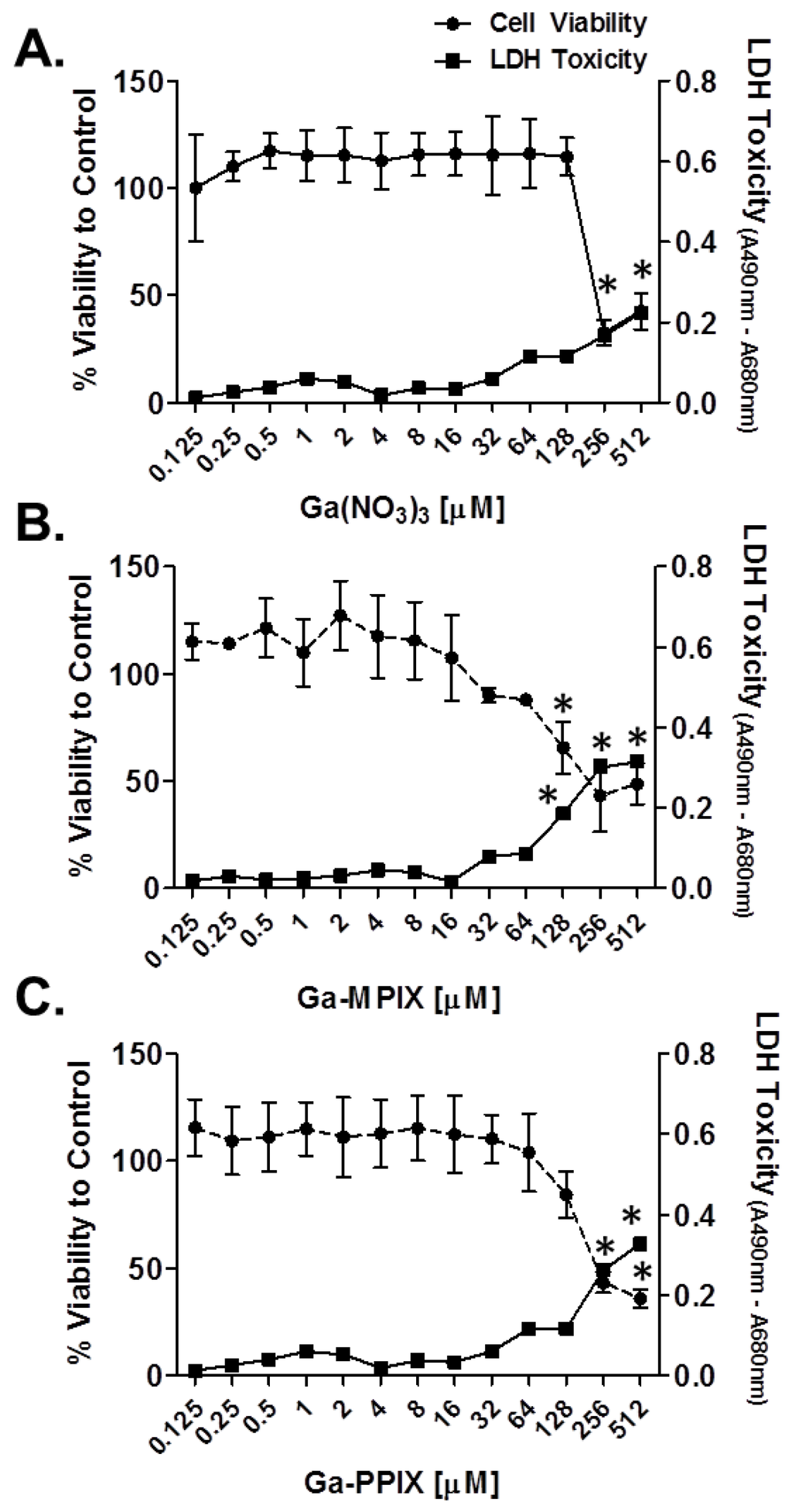 2.2. Activity of Gallium Compounds on Planktonic Bacteria