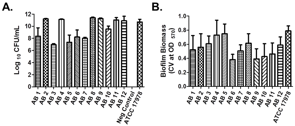 - He, X.; Lu, F.; Yuan, F.; Jiang, D.; Zhao, P.; Zhu, J.; Cheng, H.; Cao, J.; Lu, G. Biofilm formation caused by clinical Acinetobacter baumannii isolates is associated with over-expression of the AdeFGH efflux pump. Antimicrob. Agents Chemother. 2015. [Google Scholar] [CrossRef] [PubMed]