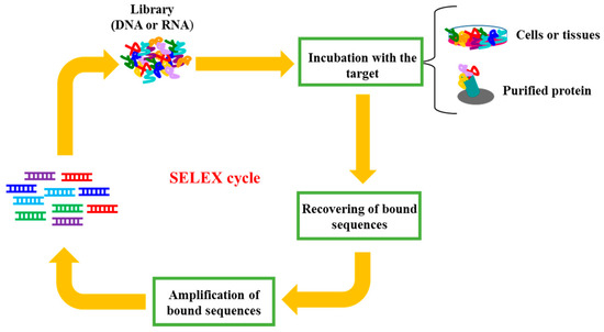 - Ellington, A.D.; Szostak, J.W. In vitro selection of RNA molecules that bind specific ligands. Nature 1990, 346, 818–822. [Google Scholar] [CrossRef] [PubMed]