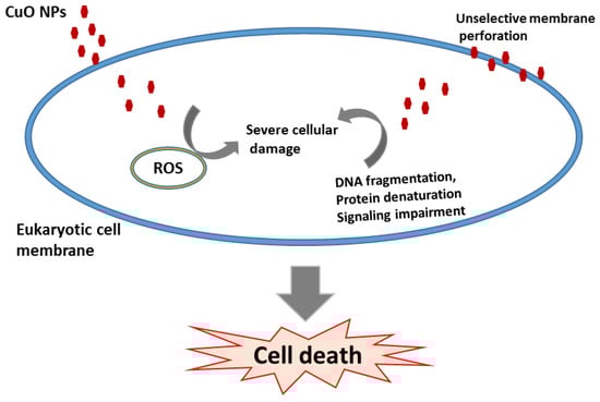 Toxicity mechanism of CuO nanoparticles in eukaryotic cells.