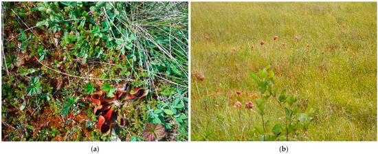 Ground reference photos showing wetland classes in the study area: (a) Bog; (b) fen; (c) marsh; and (d) swamp.