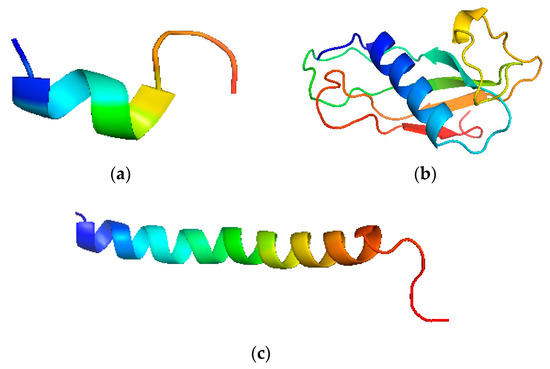 Pictorial depiction of LL-37 structure. (a) N-terminal fragment of LL-37, (b) Cathelin like the domain of human cathelicidins, (c) C-terminal fragment of LL-37.