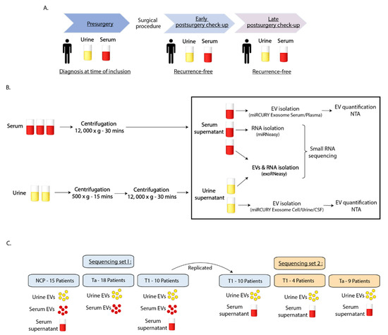 - Andreu, Z.; Oshiro, R.O.; Redruello, A.; López-Martín, S.; Gutiérrez-Vázquez, C.; Morato, E.; Marina, A.I.; Gómez, C.O.; Yáñez-Mó, M. Extracellular vesicles as a source for non-invasive biomarkers in bladder cancer progression. Eur. J. Pharm. Sci. 2017, 98, 70–79. [Google Scholar] [CrossRef] [PubMed]