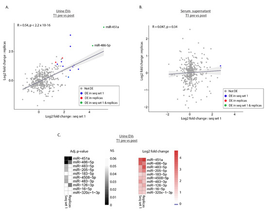 2.5. Replica Sequencing Confirms Differential Expression of miR-451a and miR-486-5p in Urinary EVs