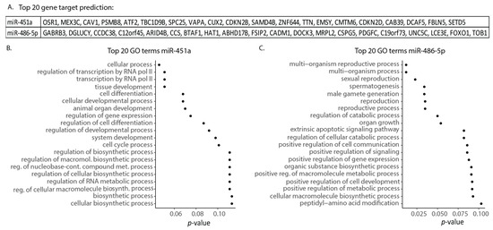 2.7. miR-451a and miR-486-5p Are Involved in Transcription Regulation, Cell Differentiation, and Apoptotic Signaling