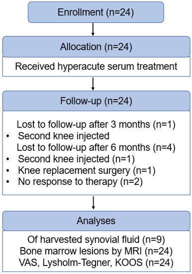 - Rutgers, M.; Creemers, L.B.; Yang, K.G.A.; Raijmakers, N.J.; Dhert, W.J.; Saris, D.B. Osteoarthritis treatment using autologous conditioned serum after placebo. Acta Orthop. 2015, 86, 114–118. [Google Scholar] [CrossRef]